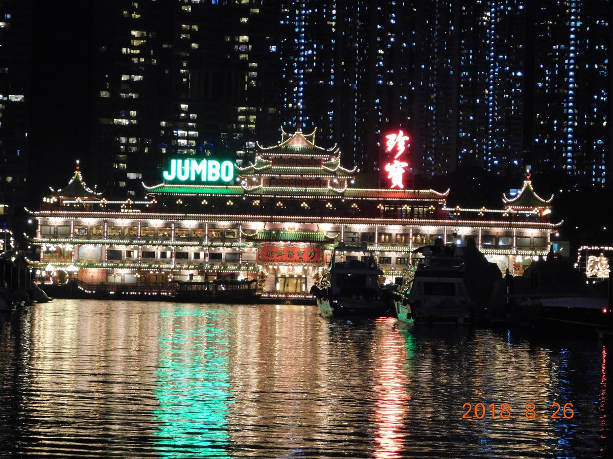香港に午後到着。チェックイン後ツアーに参加。夜景もスムーズに移動できました。(台風の影響?)心配してた天気も何とか、その後水上レストランの写真撮影。そして二階建てバスでの爆速。盛り沢山のツアー。ガイドさんの説明は、ンーン?まあ仕方ないですね。異国のツアーです。