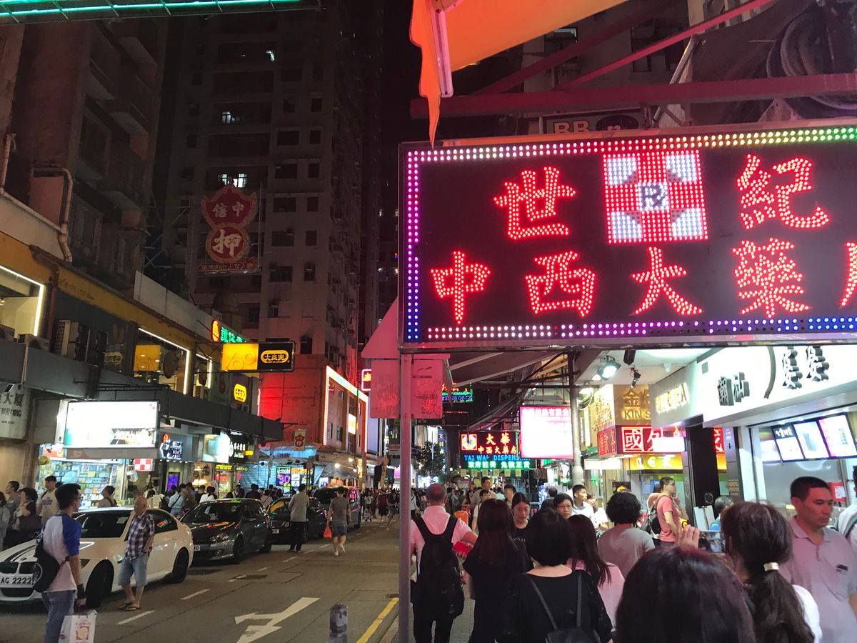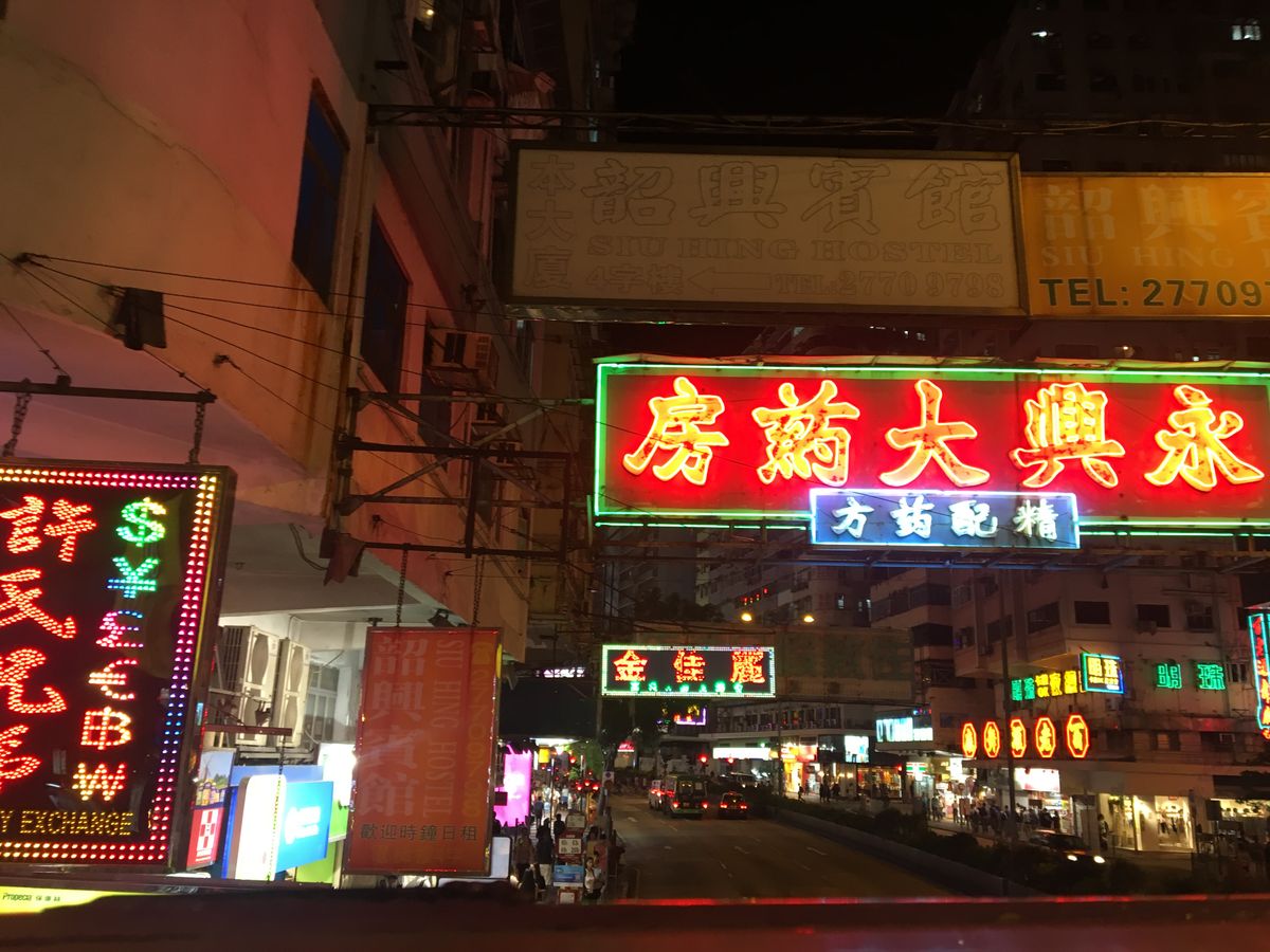 早朝、香港についた夜に行きました。まずはオープントップバスでダウンタウンの女人街や男人街を通り、名物の看板を頭上近くに見て楽しみました。歩くとなるとかなりの距離ですからバスは楽ですね。オープンエアーだし。