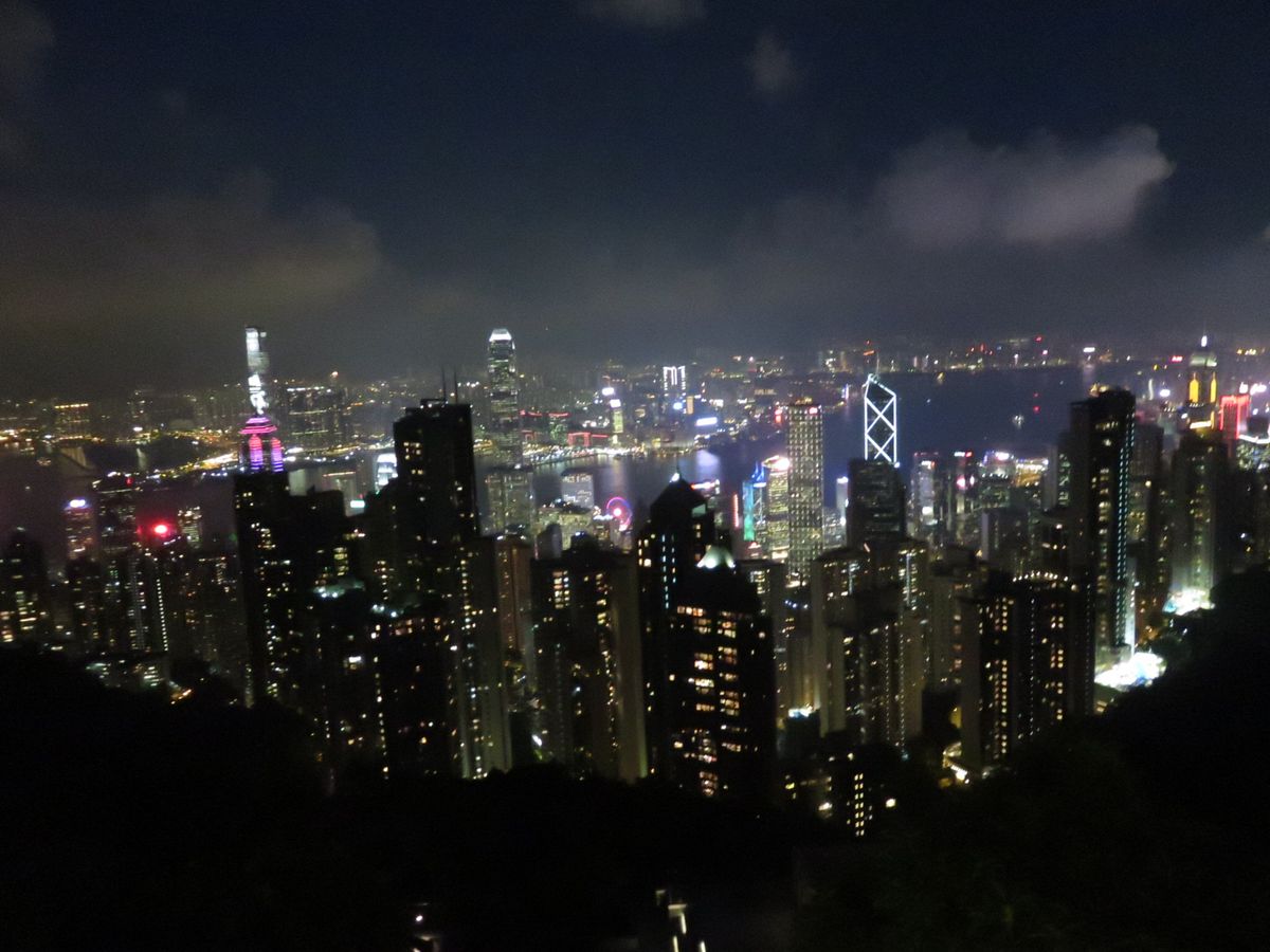 ビクトリアピークからの夜景は少し霞んでいたものの素晴らしかったです。ガイドさんもいろいろと教えてくれて親切でした。トラムは、夏休み中ということもあり大混雑、しかしながらバスで山頂まで行きましたのでしっかりと夜景も楽しめました。オープントップバスでの市内観光は楽しみにしておりましたが、途中から土砂降りに。レインコートの配布もありましたが、皆なずぶ濡れに。これも香港旅行の良い思い出ですね!