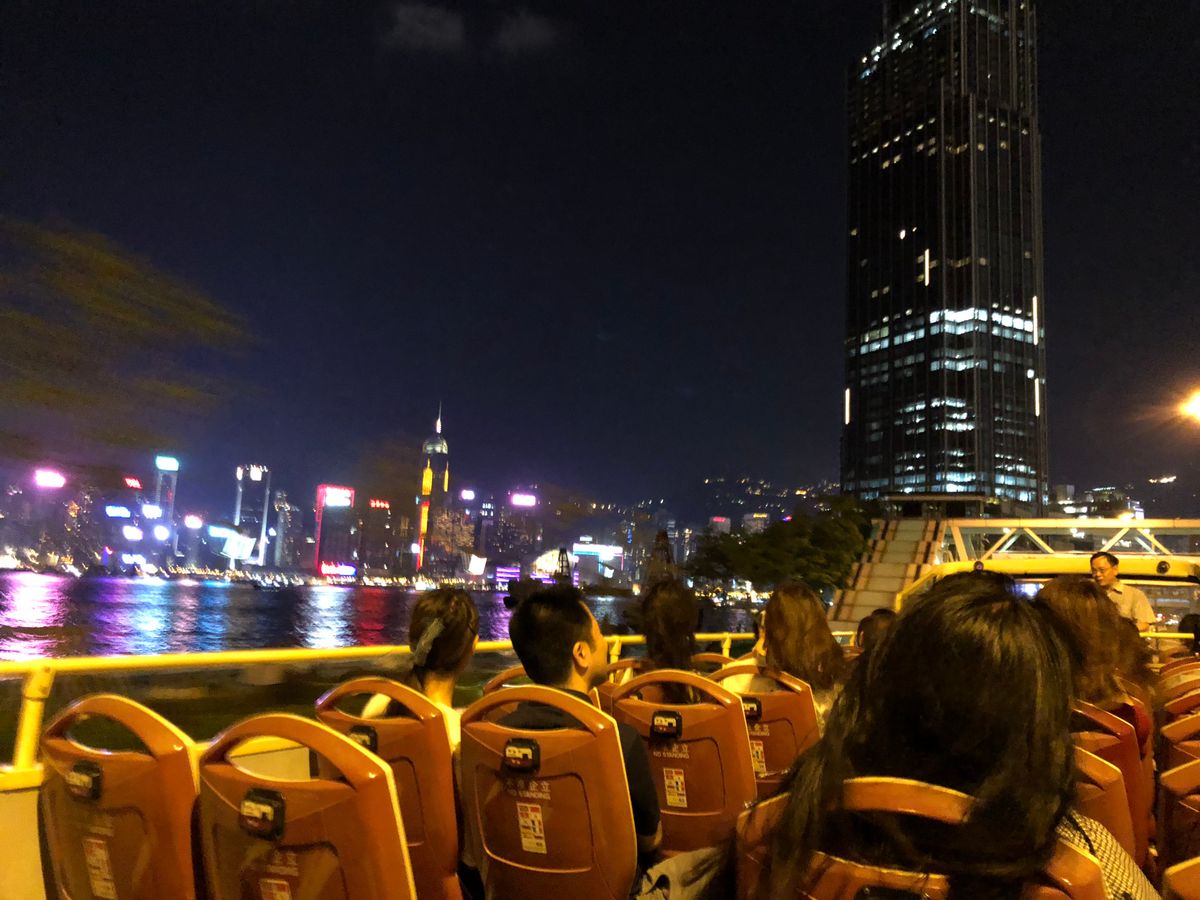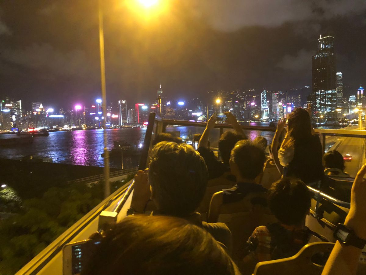 日本語の上手な男性ガイドさんによるご案内で、九龍側から香港側の夜景を見つつ、活気のあるネイザンロードに向かってものすごいスピードで街を走り抜けて爽快感がありました。
