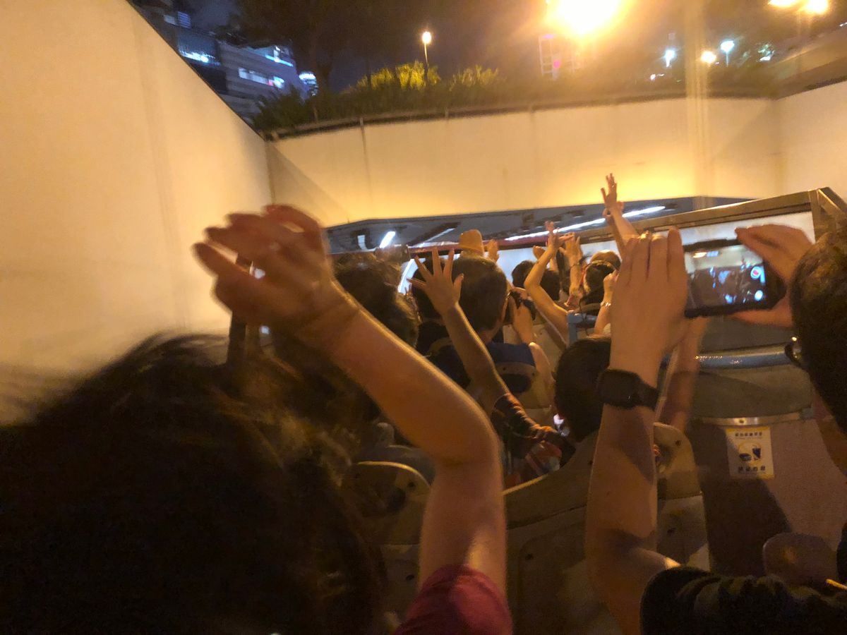 夜でも蒸し暑い時期でしたが、バスが走行すると風が非常に気持ちよく、2階からは素晴らしい眺めで、特にトンネルを走り抜ける間はジェットコースターのようで迫力がありました。