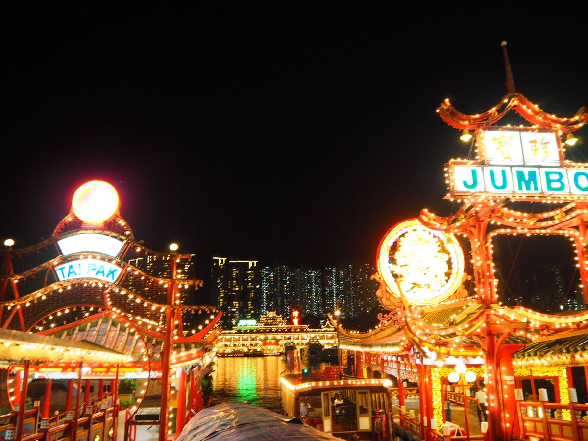 三大夜景の香港!そのなかでも香港3大夜景を楽しめました。トラム乗車でビクトリアパークへ。眼下にはちりばめられた宝石が最高にきれい(o^-^o)アバディーンのJumboの水上レストランの夜景も水面に映る色彩がゆらめいてこちらもきれい。