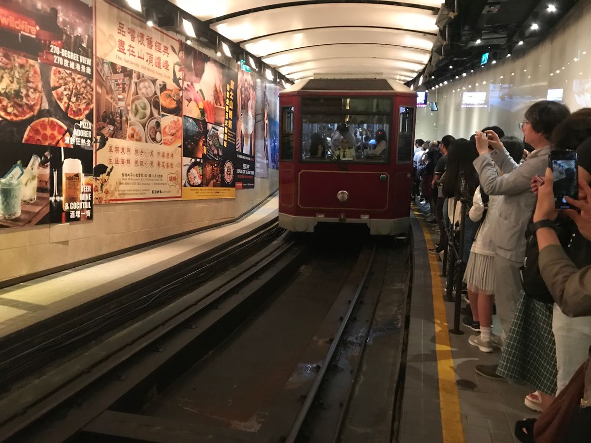 集合~ビクトリアピークまで流れがとてもスムーズでした。トラムに優先乗車できるのがよかったです(個人利用は1時間以上待ちでした)。