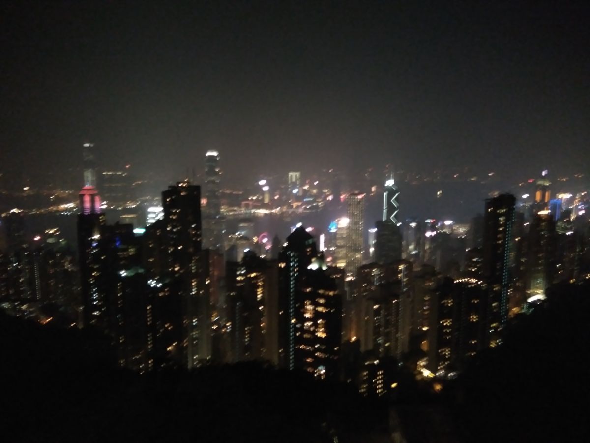ビクトリアピークは霧がすごく山頂からは闇の世界でしたが、帰りに夜景の見れる山の中腹でバスを止めてくれて撮影時間を作ってもらえました。