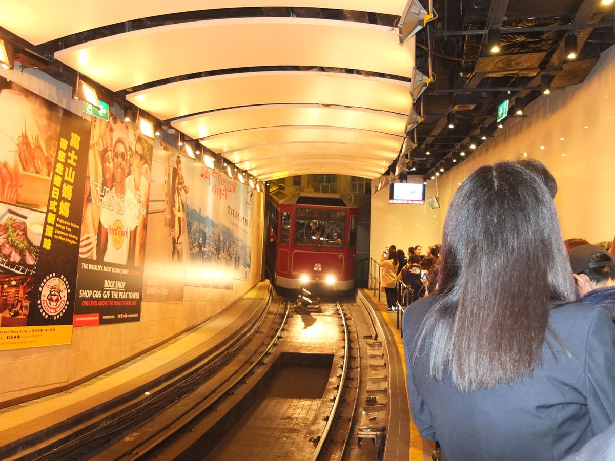 ビクトリアピークに向かうトラムに関して。トラムを待つ位置までは優先で進めますが、トラム内の席に座れるかどうかは運次第です。というのは、行列になってトラムのホームに進みますが、奥に詰めてトラムを待つため、待つ位置は自分では選べません。待つ位置が運よくドア付近であれば、席に座れます。私たちは、座れず立っていましたが、乗車時間は5分くらいだと思います。