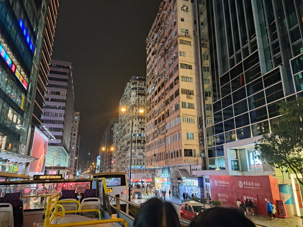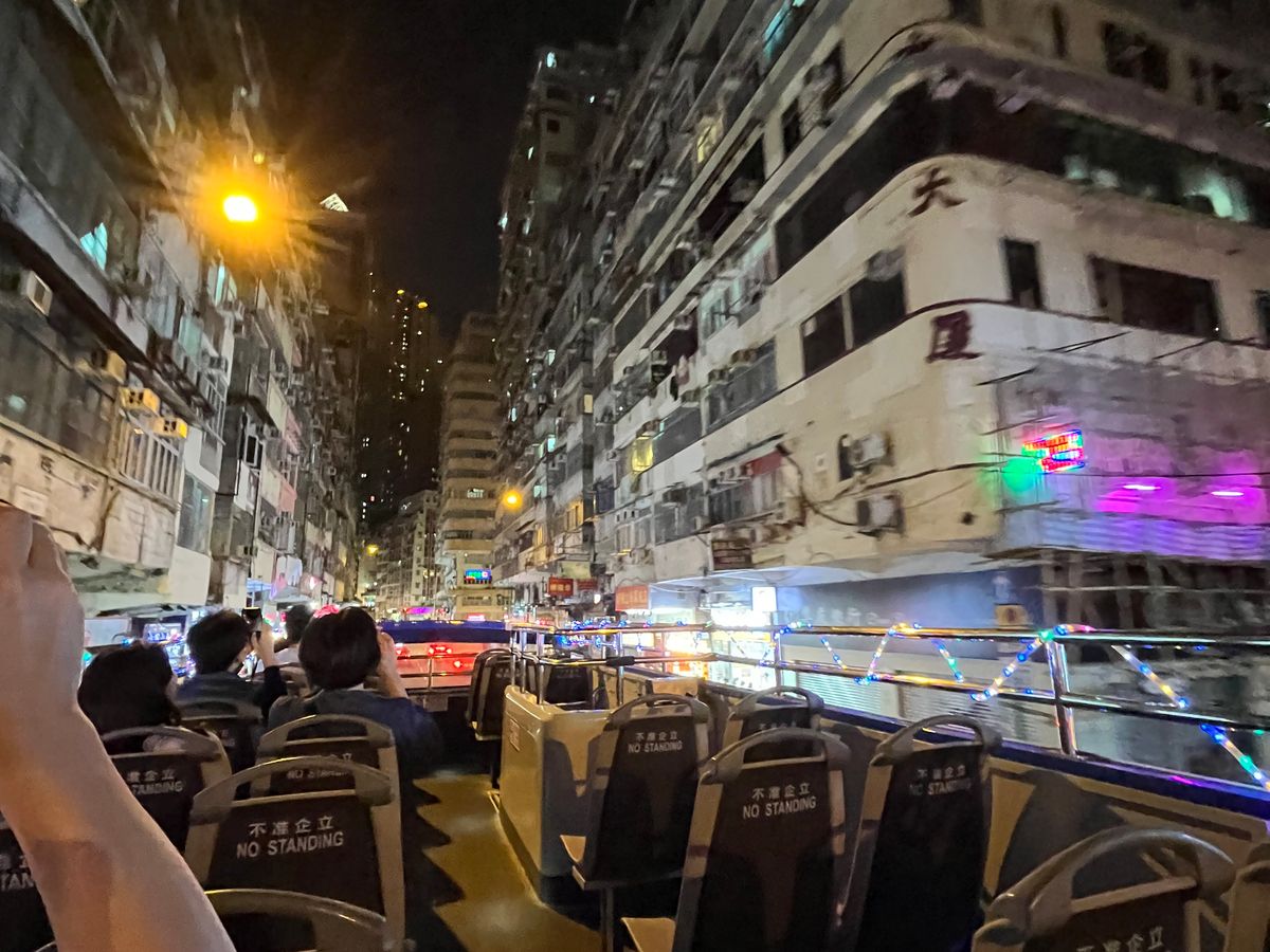 昔、香港の夜のバスツアーに参加した時の、すれすれの看板やジェットコースターのようなスリルが忘れられず、今回もツアーに参加しました。口コミで覚悟はしていましたが、突き出た看板はすっかりなくなり、さみしかったです。
