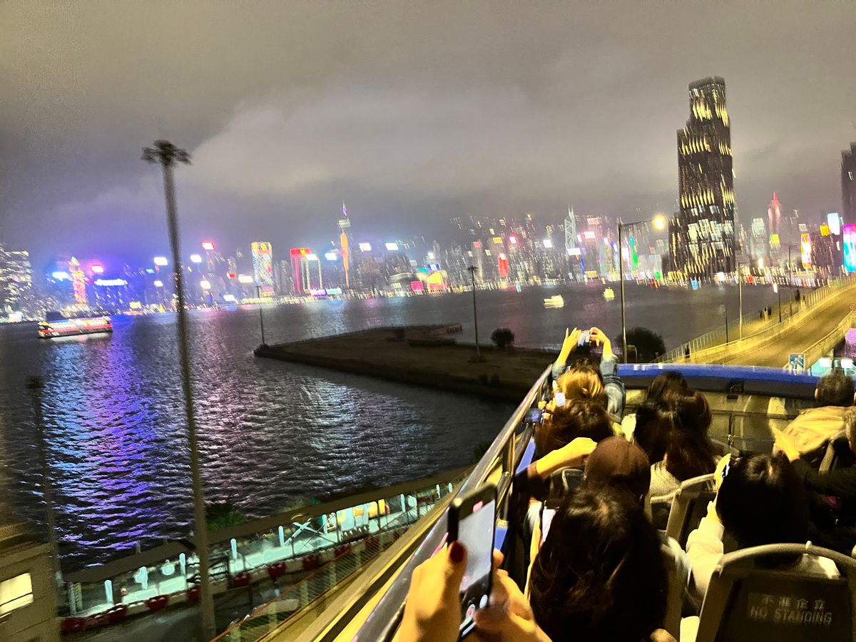 台風が接近していましたが催行していただき、本当に感謝しております。香港の夜景、最高でした!ガイドさんの軽快なトークも最高でした。残りの旅程は、台風のため、あまり楽しめませんでしたが、この「オープントップバスツアー」を経験できただけでも、香港旅行に来た甲斐があったと感じられるイベントでした。本当にありがとうございました。