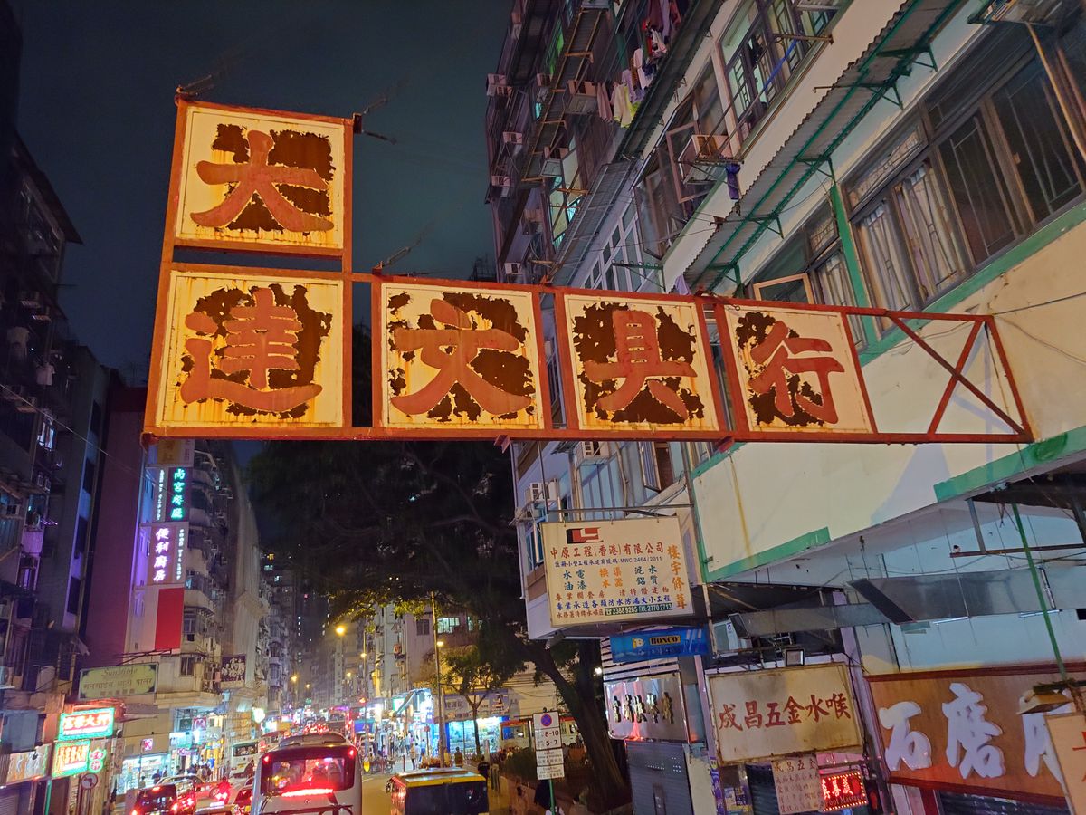 街は昔みたいなネオンはほとんどないのですが、繁華街であるネイサンロードからバスの2階で街並みが見られました。徒歩もいいのですが、高い所から見る街の風景は一興です。女人街の散策もあり、買い物もできたことも嬉しい趣向でした。