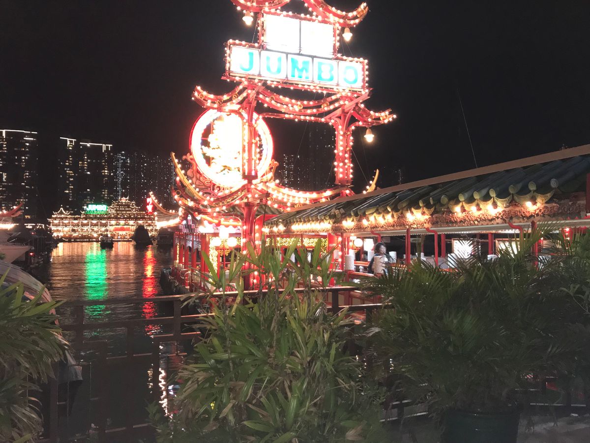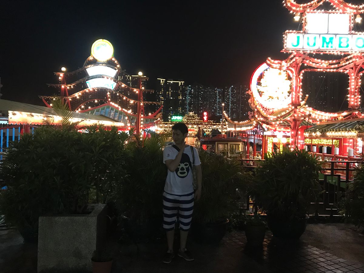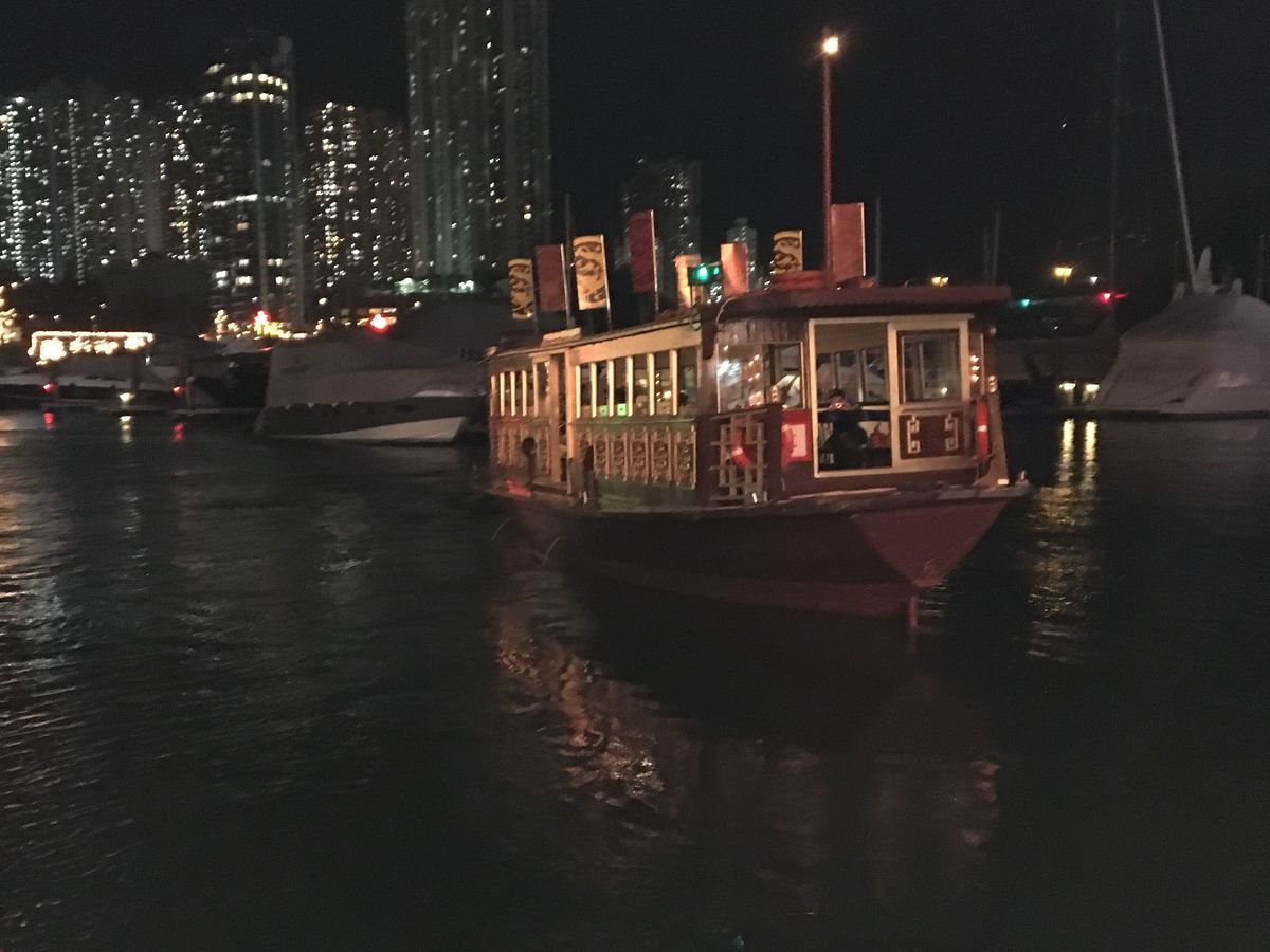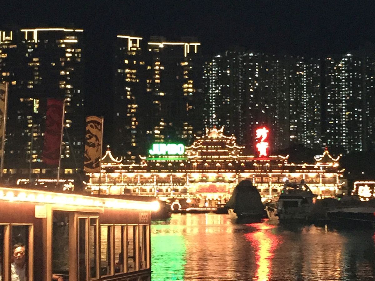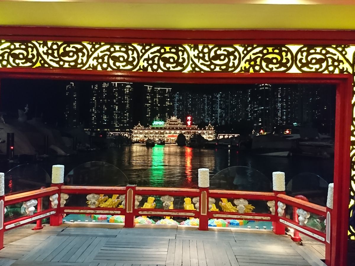 その後、アバディーン(水上レストラン)の夜景を見て、