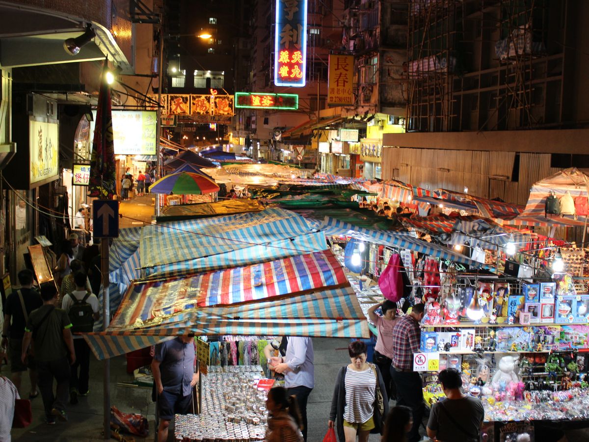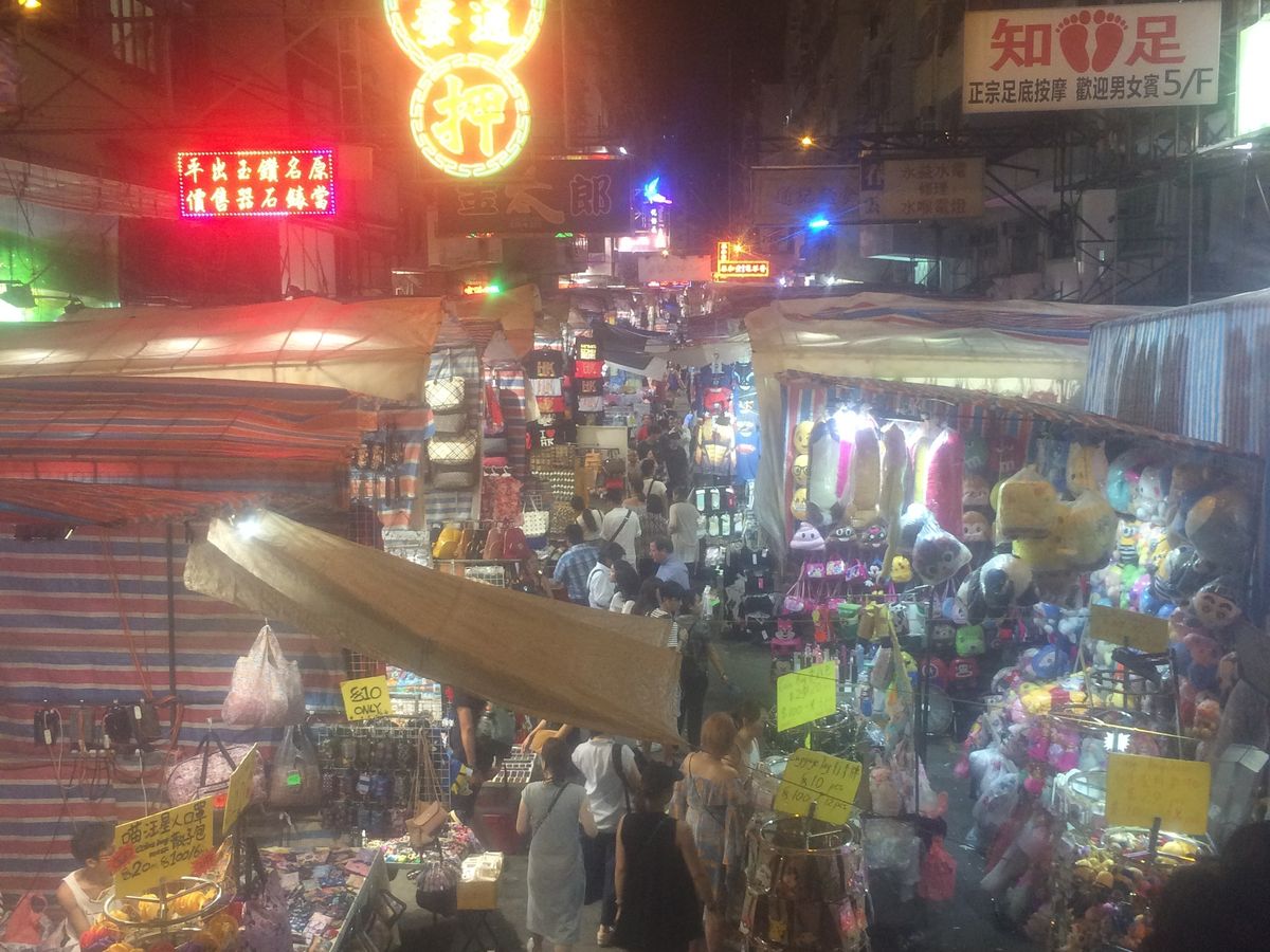 オープントップバスで景色と街並みを楽しんだあと自由時間があり、女人街を30分ほど散策しました。