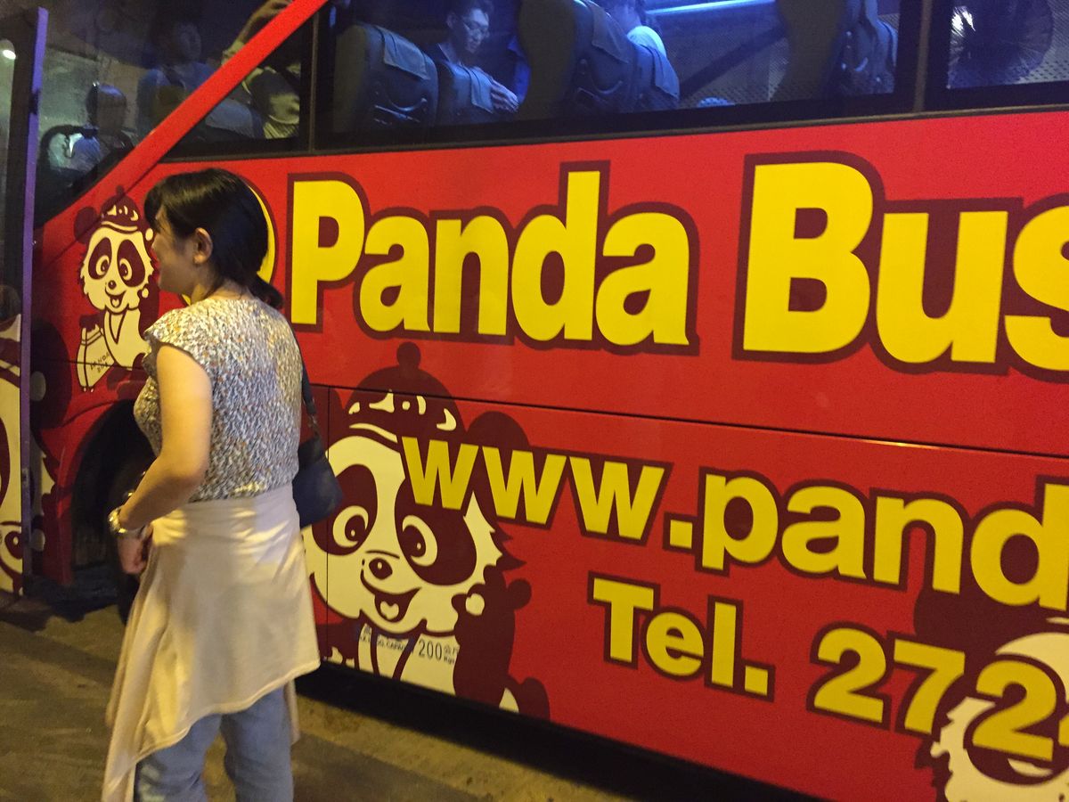 成田を土曜日の10時50分に出発し、香港には予定通り14時40分着きました。ホテルには16時過ぎにつきチェックインし、このツアーの集合が17時30分だったので、夕飯も食べる暇なく集合となりました。土曜日のせいかホテルのロビーはめちゃくちゃ混んでいて、添乗員の誘導もいまいちで別のツアーのバスに乗り込みそうになりました。一応軽食としてパンダのアンパンと肉のはさまったパンとパックのウーロン茶が出たので少し、腹の足しにはなりました。近くのセブンで何か食べ物を買って持ち込んでもよいかなと思いました。(たいしたもの売っていませんが・・)