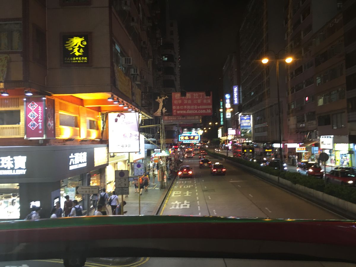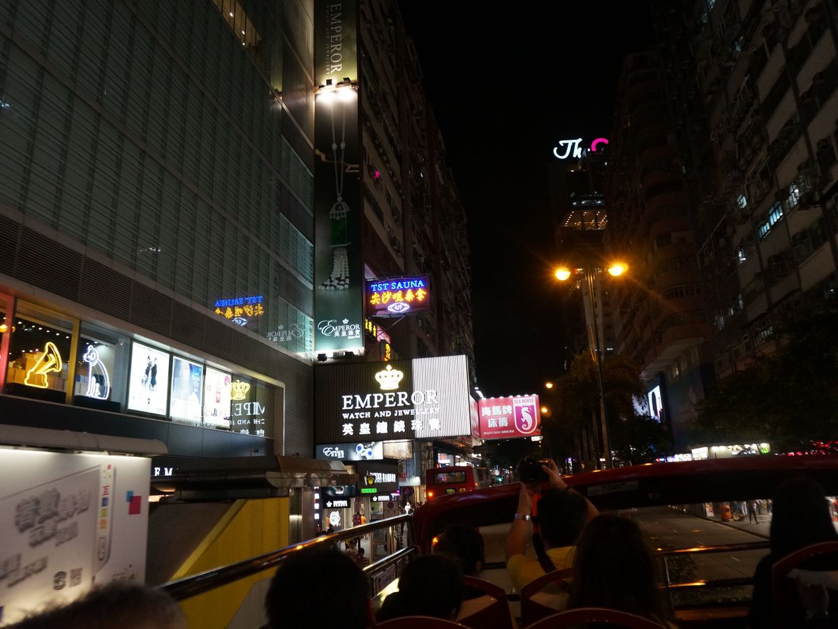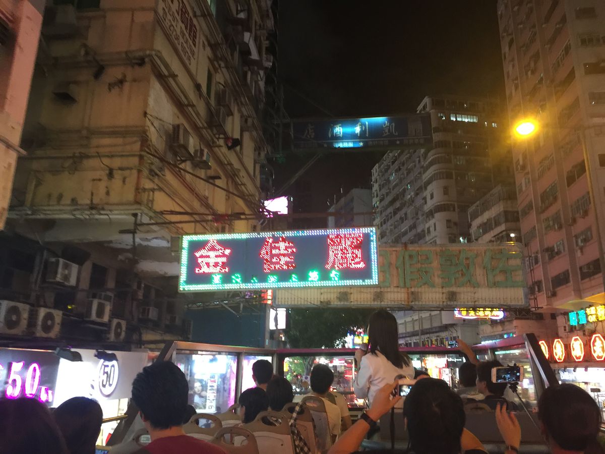 以前他社で参加経験がありまして、もっとネオン看板スレスレの所を通過して、ザ、香港って感動したけど、今回は、ネオン看板あまり味わえなかった。同じ様な所通過してるはずだけど、何が違うのか?