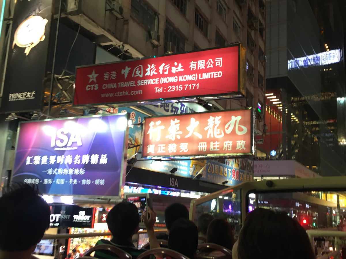 オープントップバスは、爽快でした。ツアーのせいではないですが、香港の看板はだいぶなくなってますね。