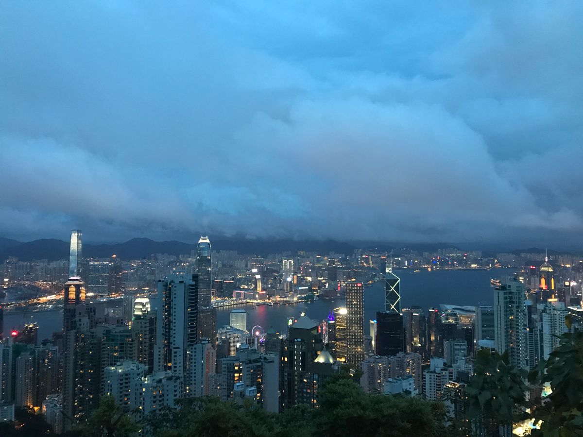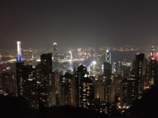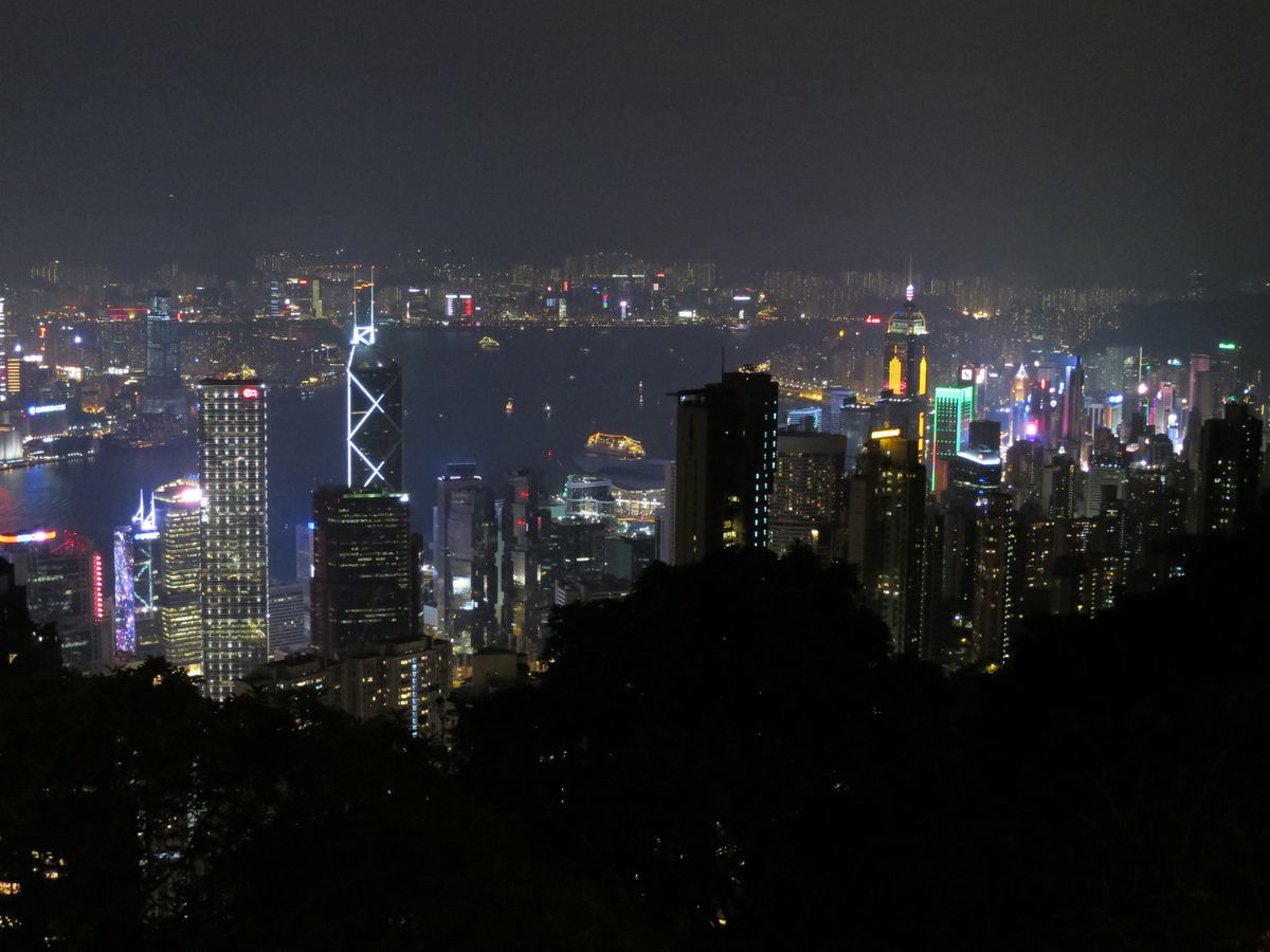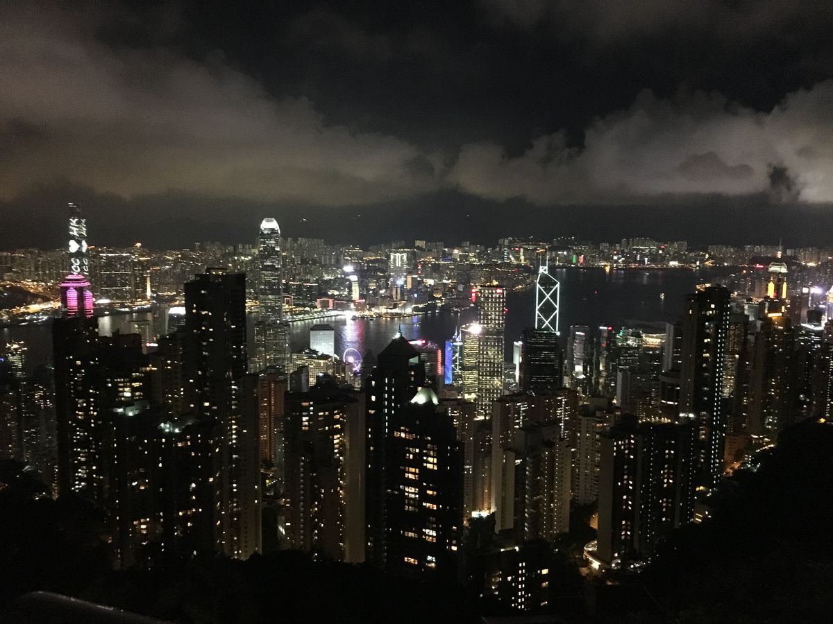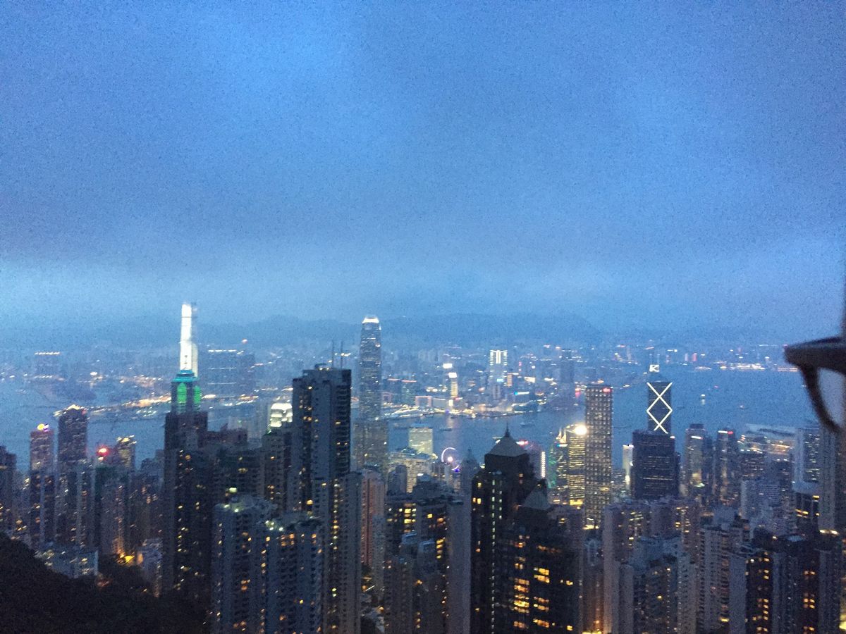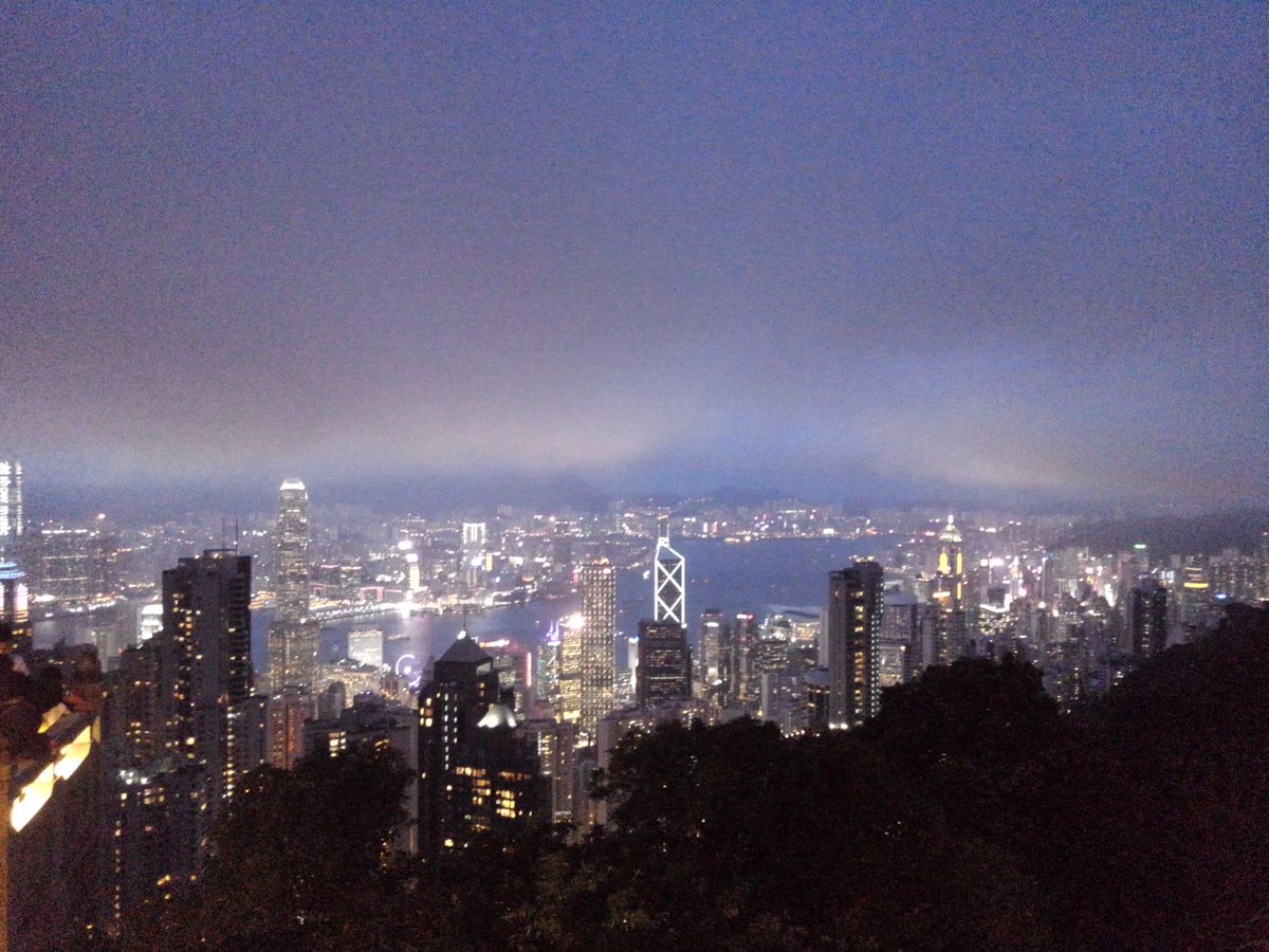 ビクトリアピークの夜景は小雨と霧で景色が霞んでましたが、そこそこ綺麗にみえました。