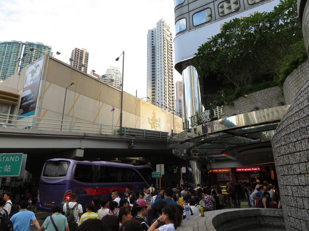 まずバスに乗って、香港の繁華街を駆け巡りました。上を見上げると空なので、ジェットコースターのような感覚を味わうことができます!!バス内は満員で、他のツアーの方もおられましたので、集合場所が大混雑していて下手すれば乗り遅れるところでした。。。繁華街を駆け巡った