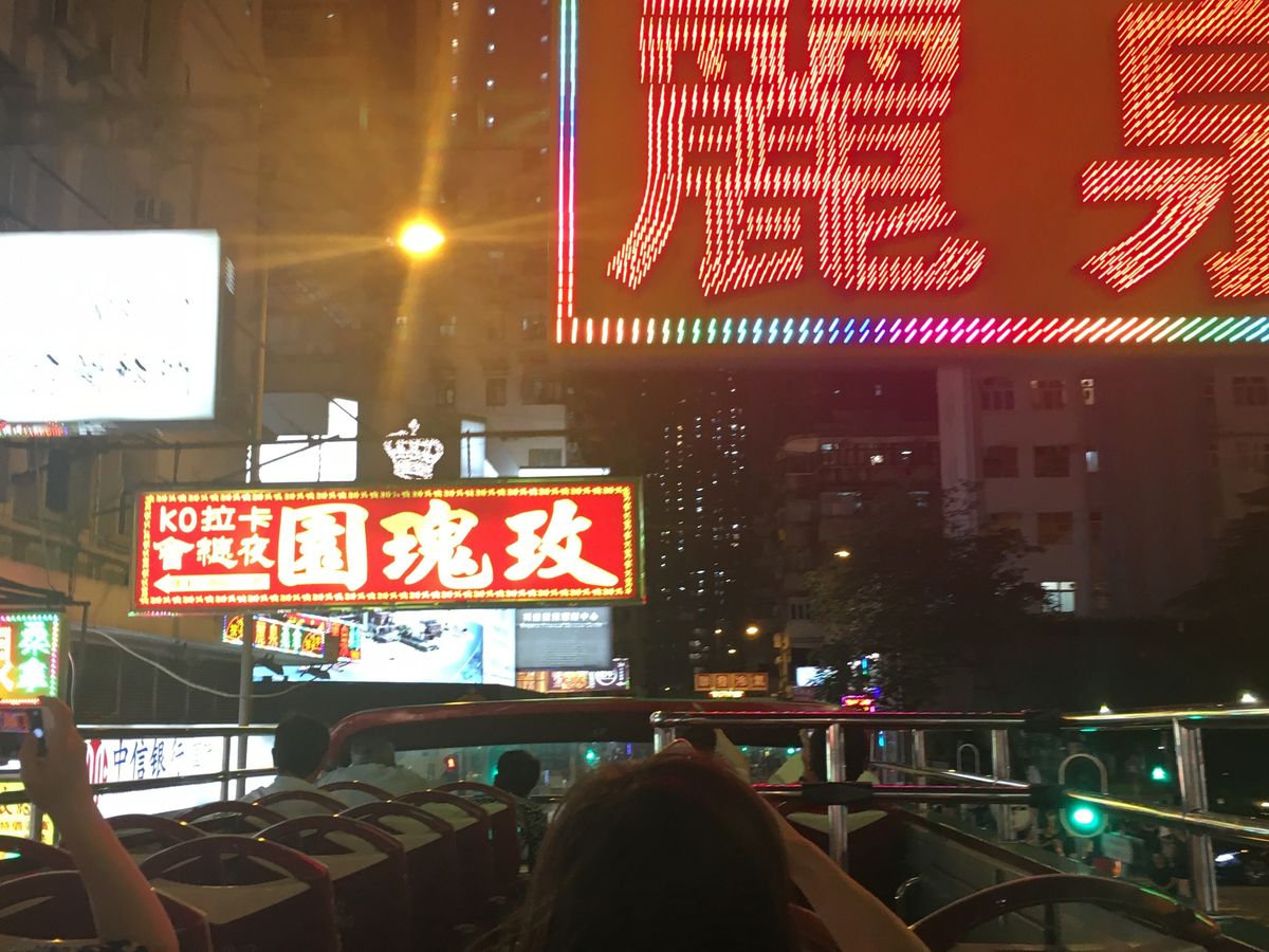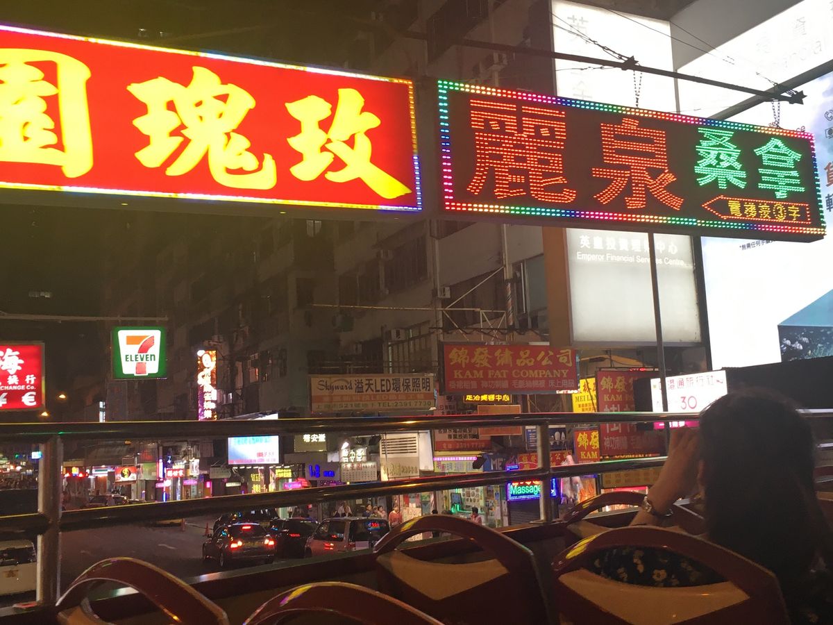 バスに乗り、ぐるぐるとネオン街を回ります。香港に来たと感じますが、やはり看板は少なかったです。また運転が荒く、横断歩道で子供と接触しそうになった時はびっくりしました。