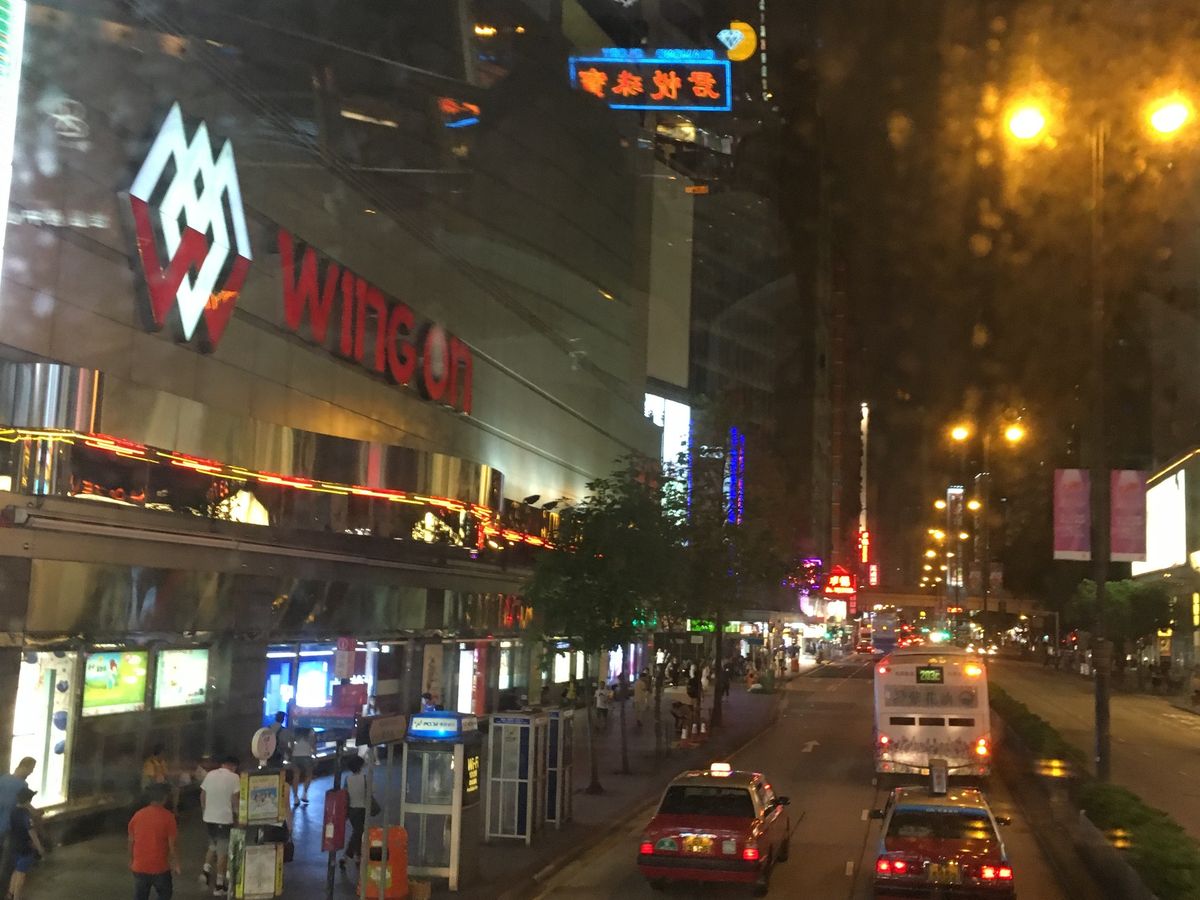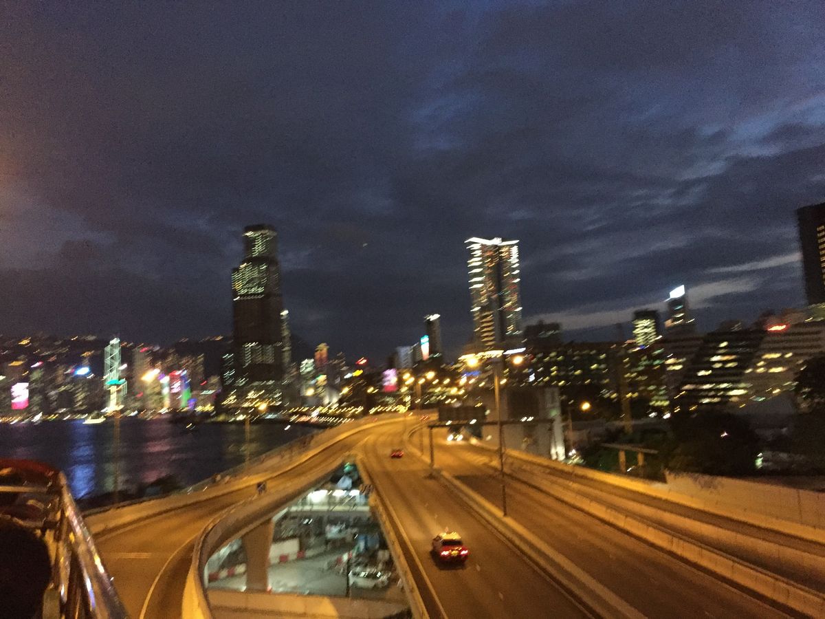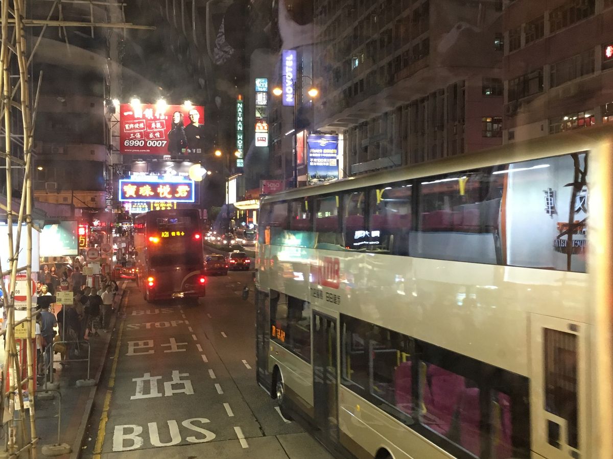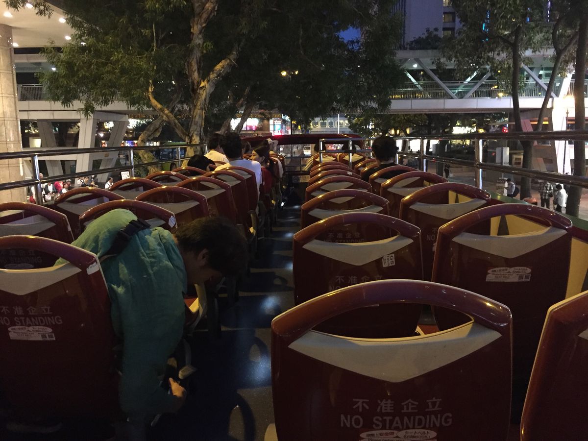 その後はまたバスで移動しオープントップバスに乗り込み、香港の街並みを見学。ザ!香港といった景色を見られて大満足です。写真をたくさん撮りました。それにしてもその日は土曜日だったせいか、夜も遅いのに人がたくさん出歩いていて驚きです。