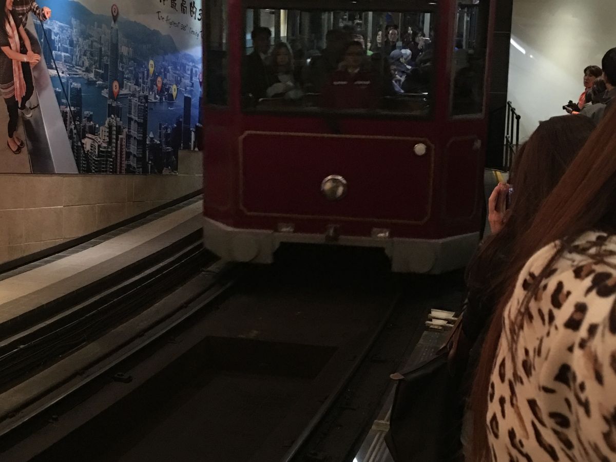 集合場所は17:30。私達が宿泊していたカオルーンホテルでした。10分早めにロビーで待っていましたが、ガイドさんも少し早めに到着しピックアップしてくれ安心でした。もう1つのホテルで他のお客さんをピックアップし、全員揃ったところでビクトリアピークへ。 ピークトラム乗り場ホームではKOUさんが「この辺で立って待っていると乗車口だからすぐ好きな席に座れますよ」と親切に教えてくれました。また進行方向右側に座ると景色が良く見えることも教えて頂きとてもよかったです。
