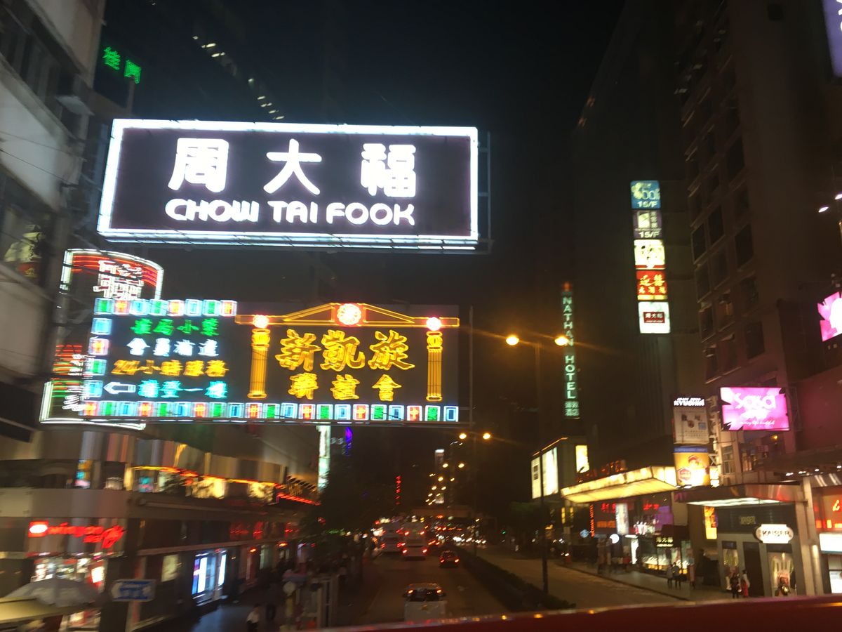 オープントップバスは評判通り楽しかったです。昼間歩いたネイザンロードもバスの2階から見る景色はまた違っていて楽しめました。