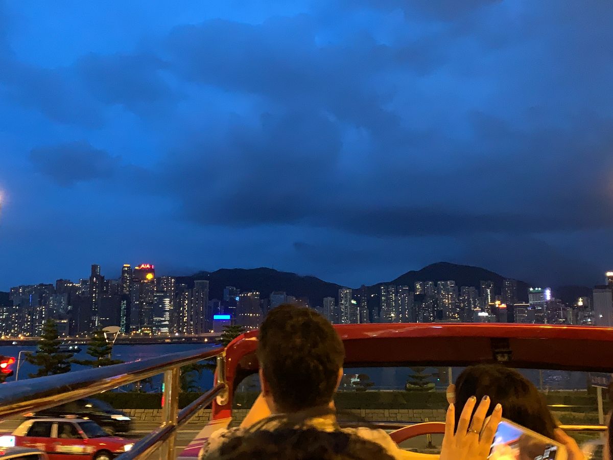 天気が悪く、強い雨も降りましたが、ビクトリアピークからキレイな景色を見ることができました。オープントップバスからみた街の景色は、思ったよりもネオンが少なく少しだけ残念でした。