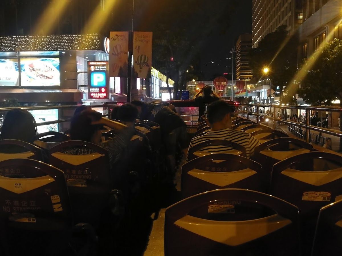オープントップバス乗車時も、霧雨のような状態だったのですが、ビニール河童を頂けてずぶぬれになることはなかったし、香港のクリスマスは寒くないので特に問題なく楽しめました!街はクリスマスのイルミネーションで綺麗でした!