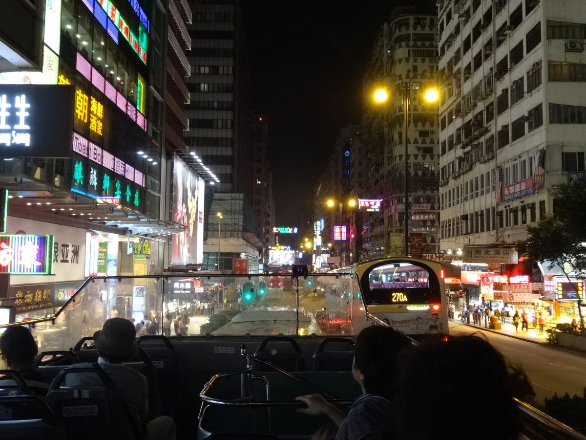 昔ほど頭上の看板が無くなったためか、トンネルや香港島の夜景に多くの時間を割くようになったそうで、そこはちょっと残念ですが、それでもバスの二階から見る景色、見下ろす景色はここでしか味わえないです。