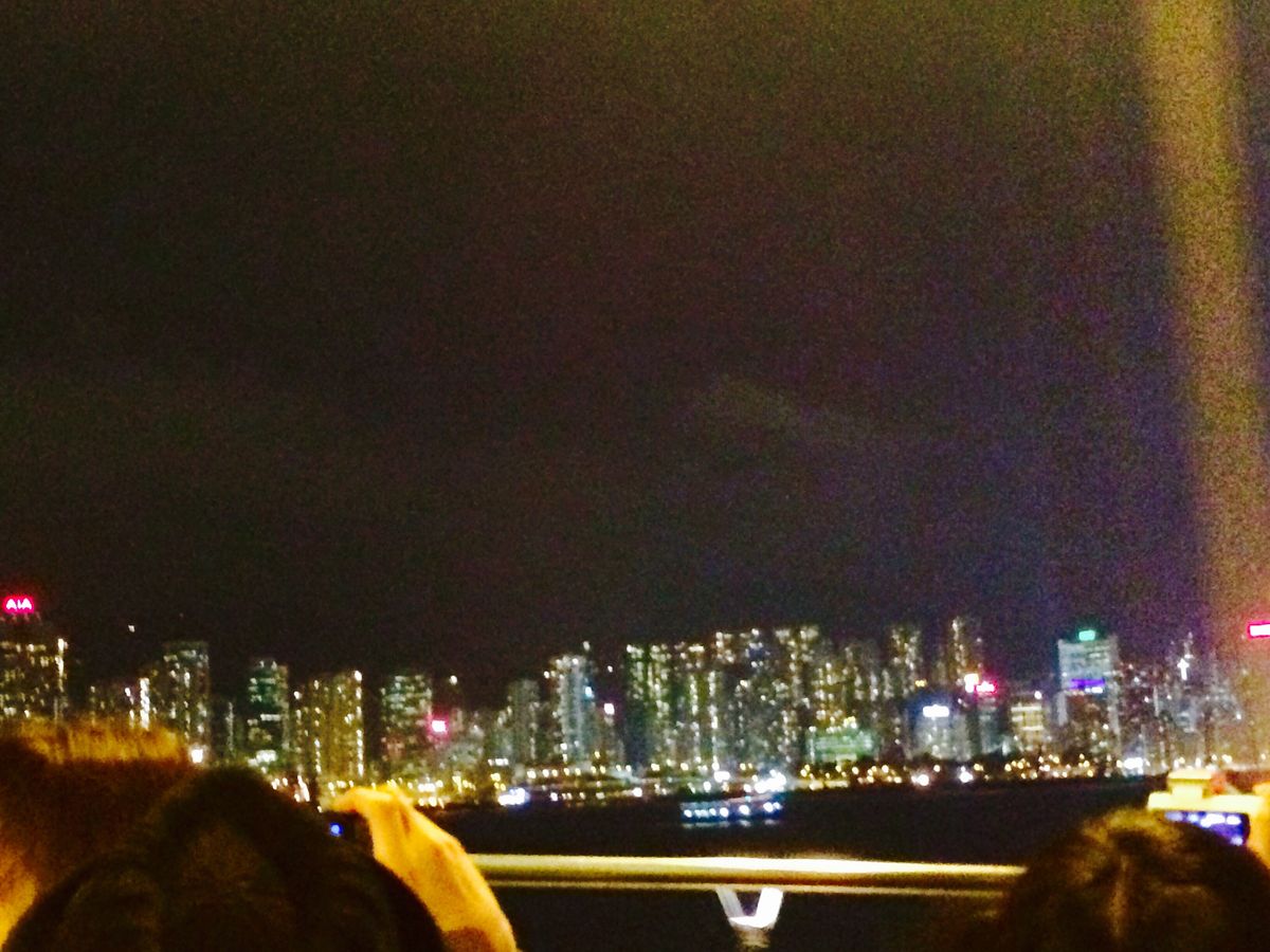 香港の夜景を楽しむのですがとにかく寒い!上着を用意してましたがものすごい風に当たりながらになりますので、夏以外に参加の方は上着を用意されることをお勧めします。