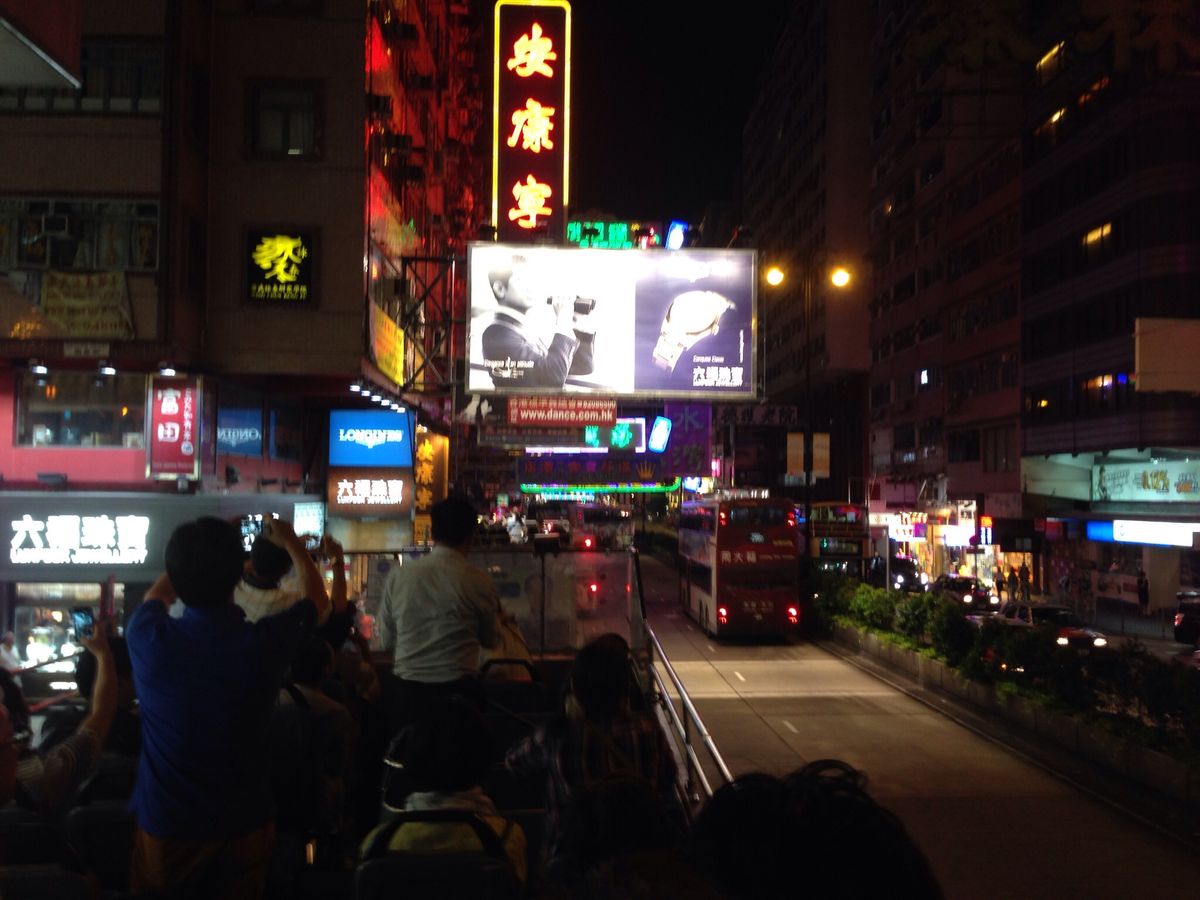 バスの二階から眺める香港の景色がとても綺麗でした。それだけでなく、迫り来る看板たちや、坂の上り下りがアトラクションのようで楽しめました。