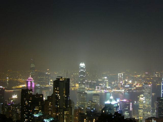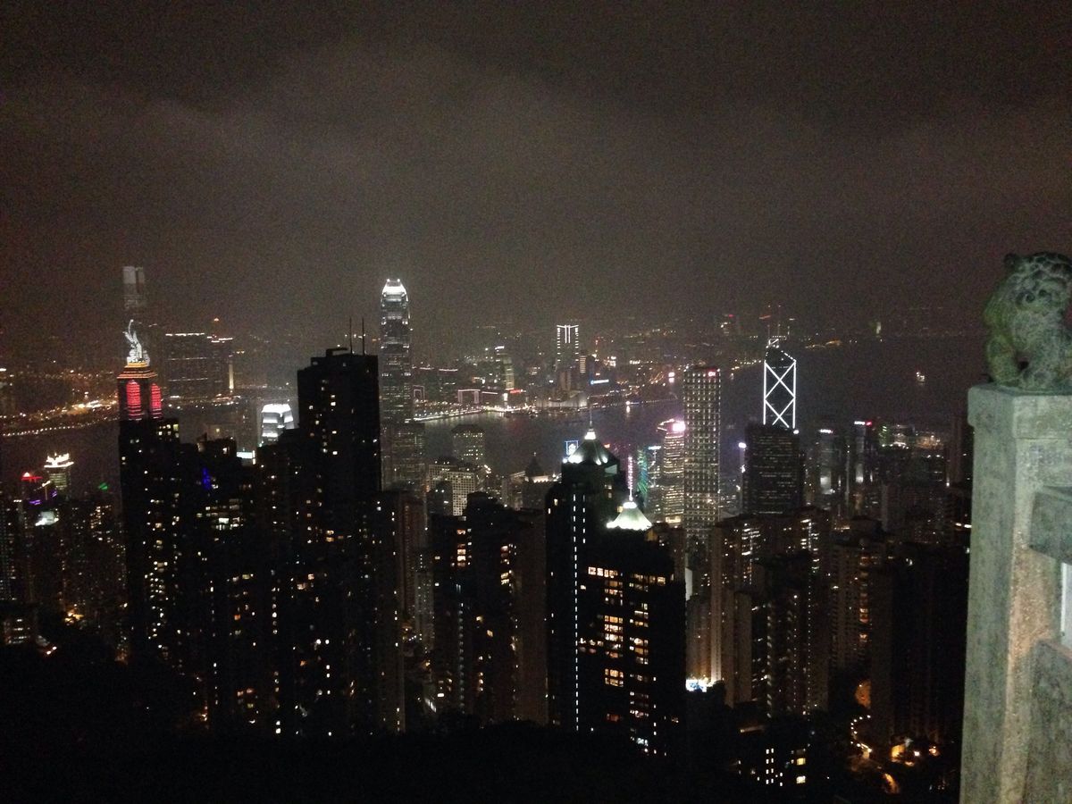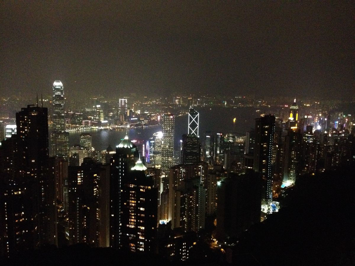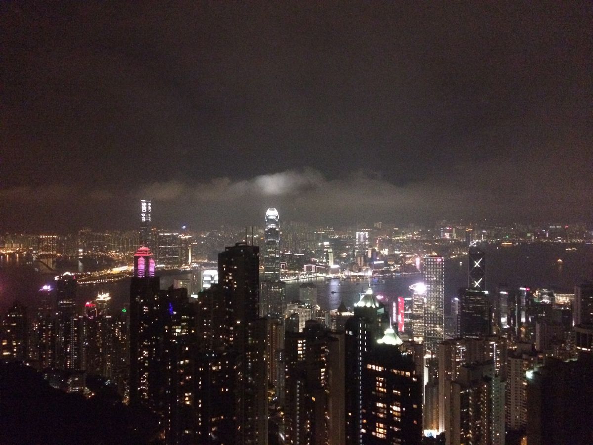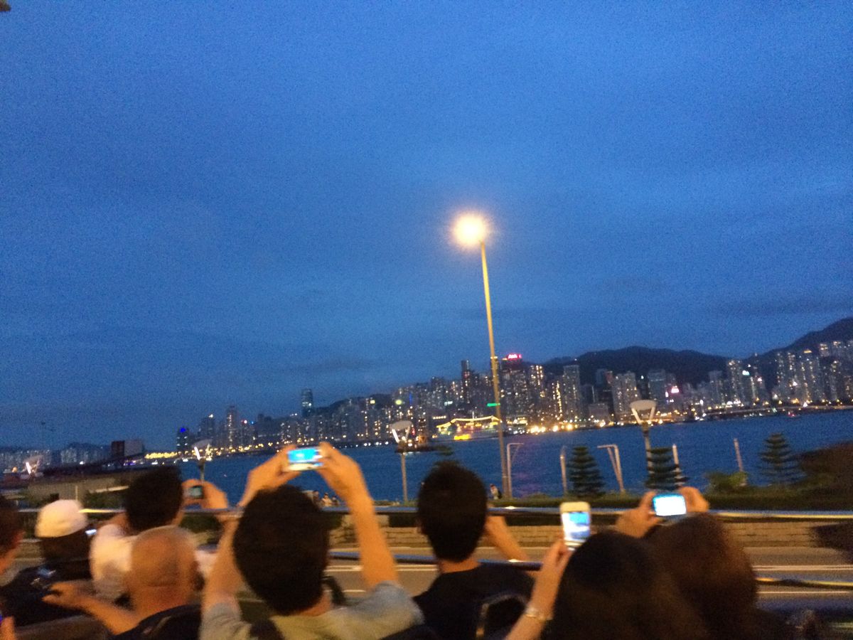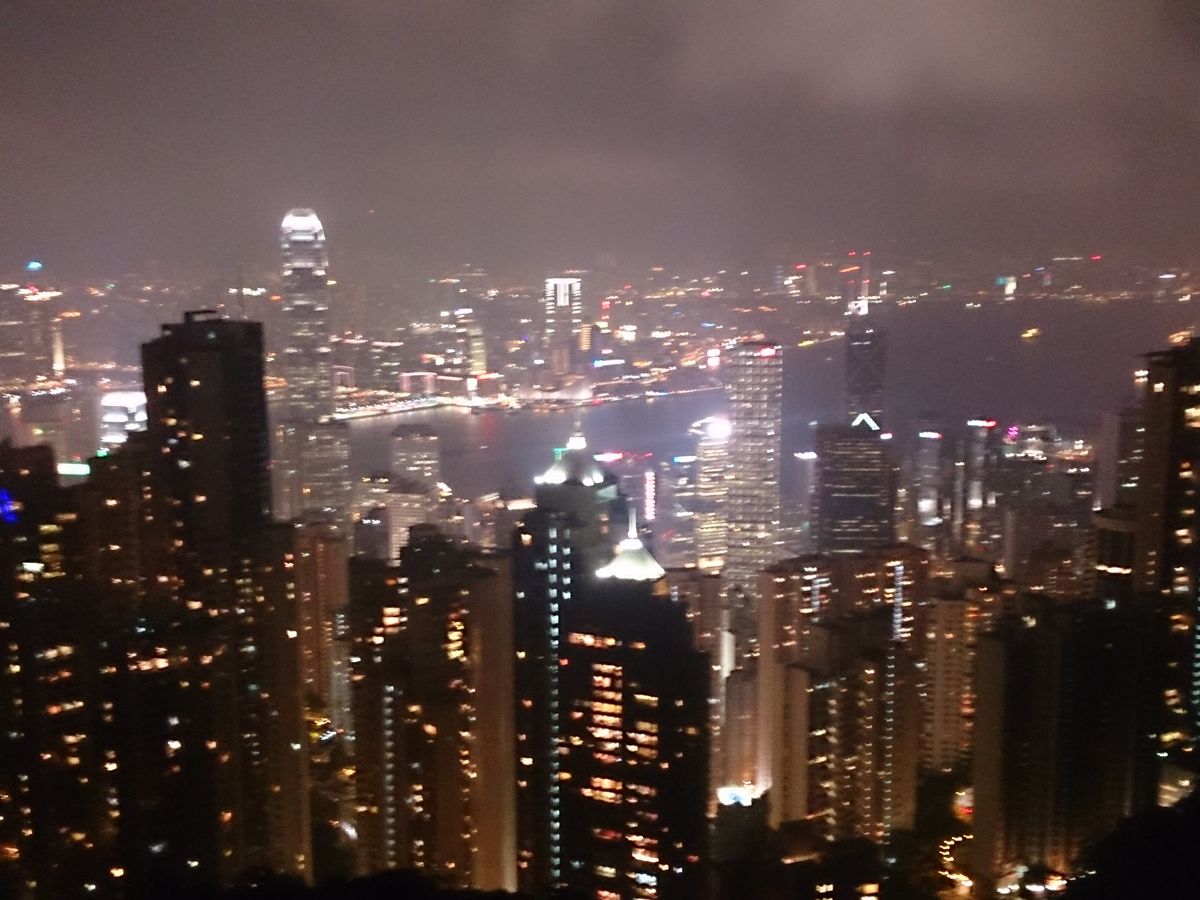 ビクトリアハーバーの夜景がすごくキレイで、ガイドさんもこんなに晴れているのは珍しいです、と言っていました。