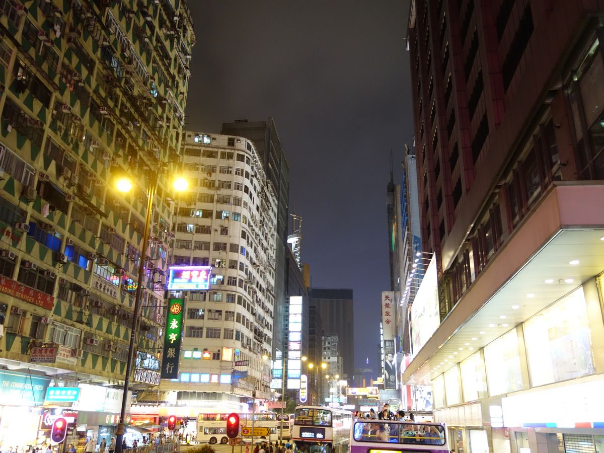 19:10~のプランに参加しました。香港島の夜景は綺麗で、ネオンの洪水のような通りもにぎやかで楽しかったです。途中ジェットコースターのようにバスが疾走する体験もあり楽しめました。小雨が降る中でしたが、レインコートを着ていましたのでどうにかなりました。女人街では特に買い物はしませんでしたが、ごちゃごちゃとした雰囲気を味わえました。帰りはオープントップバスに乗車したまま香港島のホテルまで送ってもらえました。