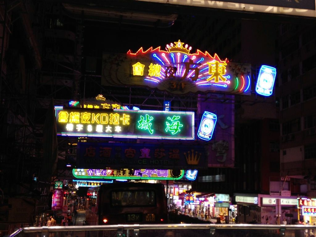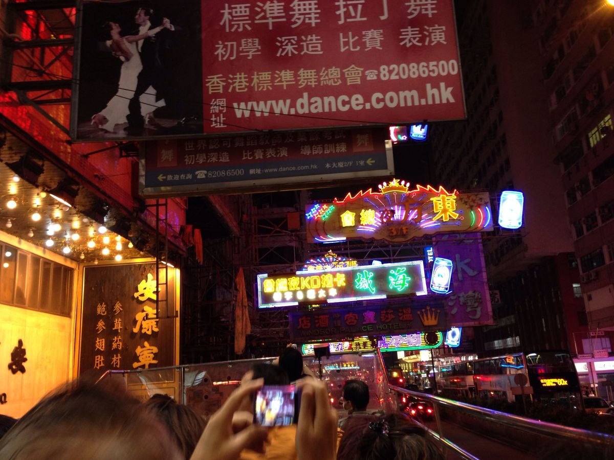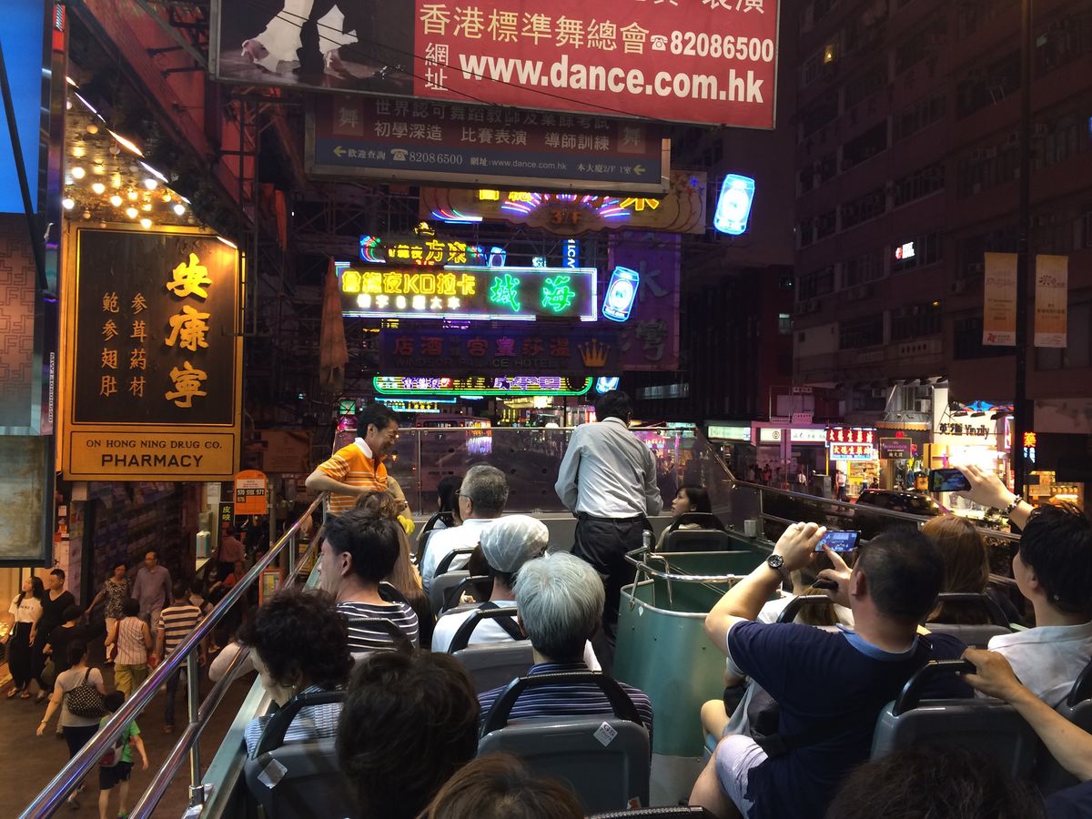 香港の夜景を身近に感じることができ、また電光掲示板スレスレで走るバスにスリリングさを