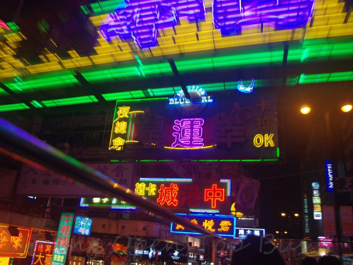 香港のネオン看板や街並み、夜景の写真を撮りながら、