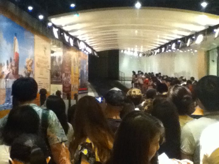 お客様のおっしゃるとおり、ご集合場所の免税店入り口は、時間帯によりまして他ツアーの集合場所ともなりますので、