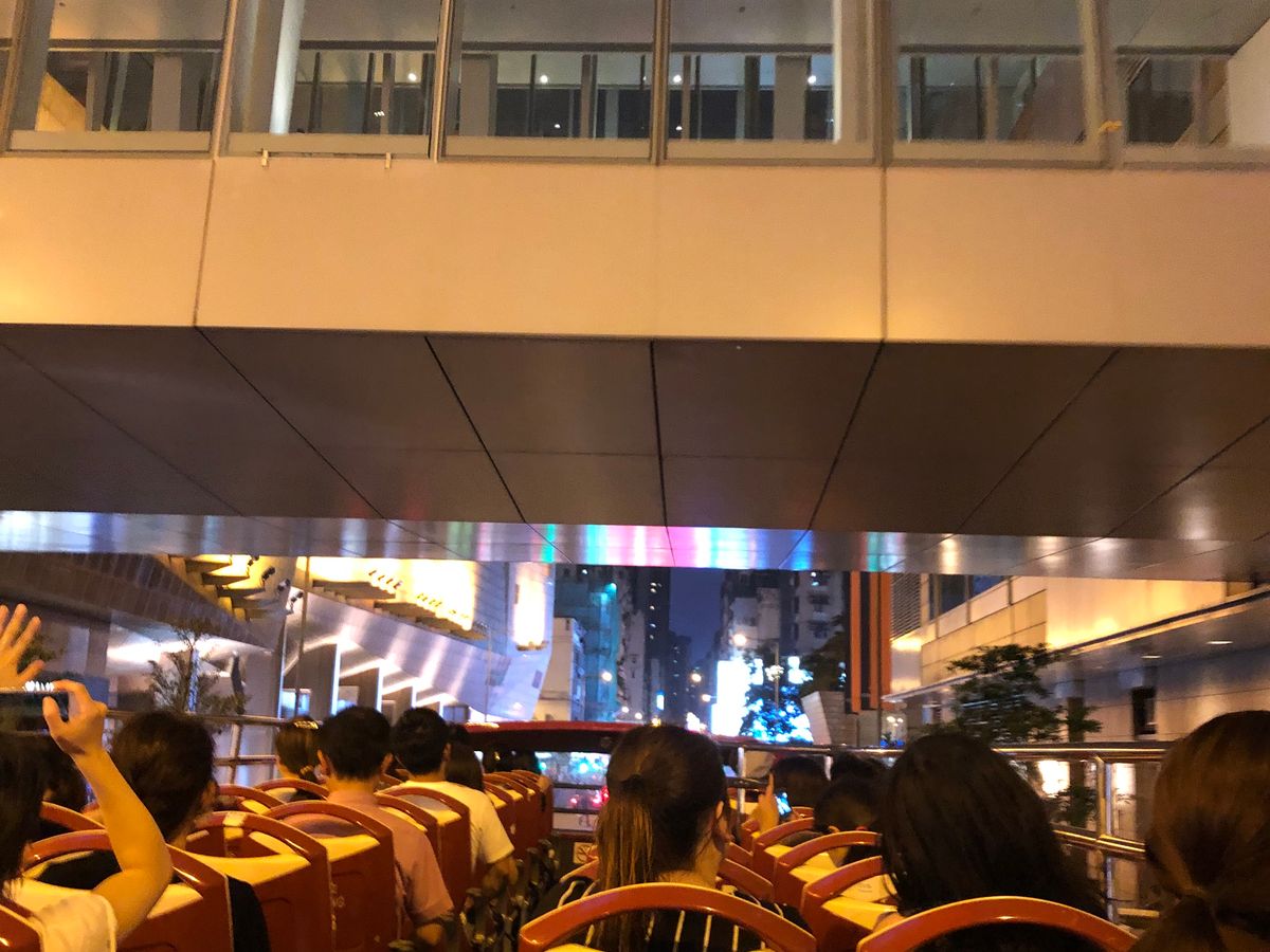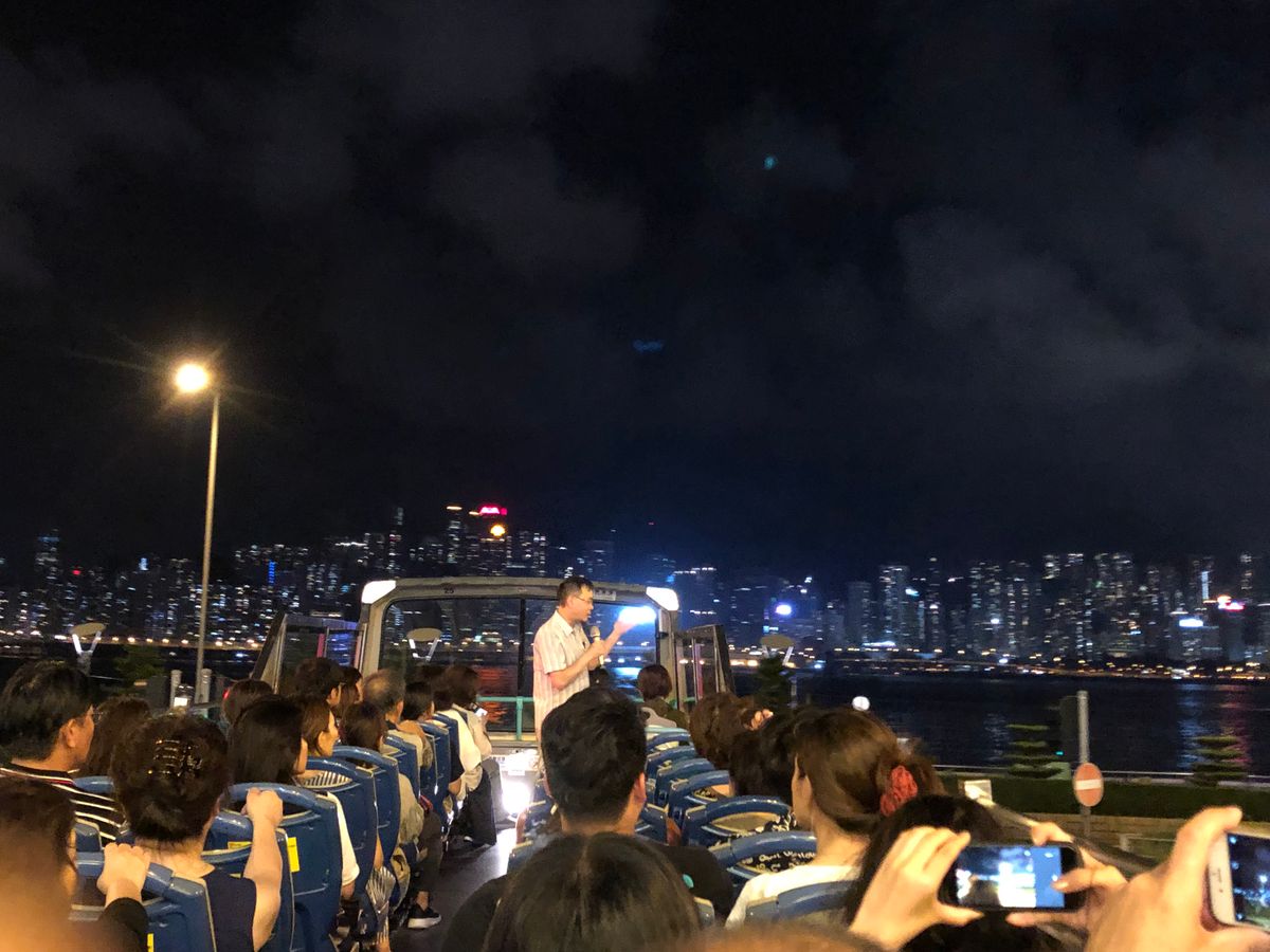 蒸し蒸しして暑い香港ですが、夜の街中を風を感じてオープントップバスでドライブでき、楽しかったです。キラキラなネオンが香港らしく、頭上ギリギリの高架下を通過したり、アトラクションに乗ってる感があり、皆、歓声をあげていました、途中で、夜景鑑賞組と女人街組に分かれますが、案内がわかりにくく間違えた方がいらっしゃいました(ちょっと日本語が聞き取り難い)。ビクトリアピークからの夜景はとても綺麗で、自分で来るのは大変なのでツアーで楽でした。山頂の女子トイレが混んでるので、時間に余裕が必要です。帰りは、宿泊ホテルを伝えると、近くの道端でパスを降車するシステムでした。