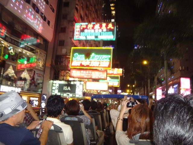 夜の香港でのオープントップバス かなりベタですが,