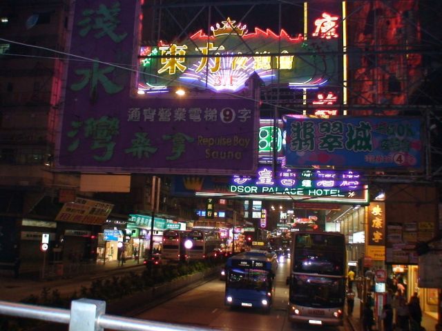 夜の2階だてバスは気持ちよく、名物の香港看板も手がとどきそうでした。