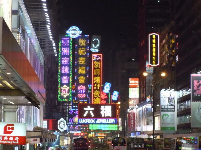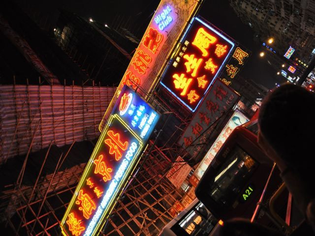 香港名物の電光掲示板を間近で見ることが出来るのは
