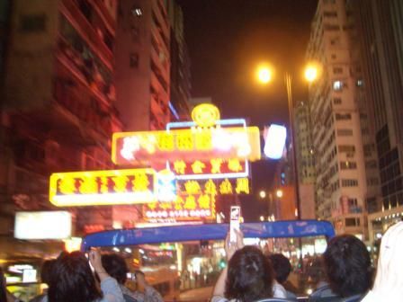 注:オープントップバスは看板の下を潜り抜けるスリル感を楽しみに期待してたのに、これからかな・・・と思ってたら脇道に入ってあっけなく終了でした。そこが女人街のスタート地点で山頂行きのバスのスタート地点でした。