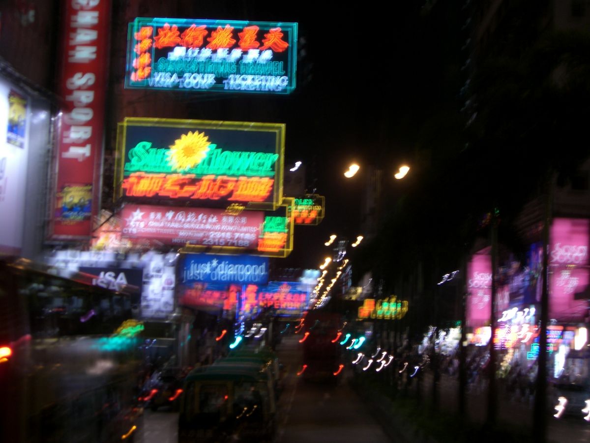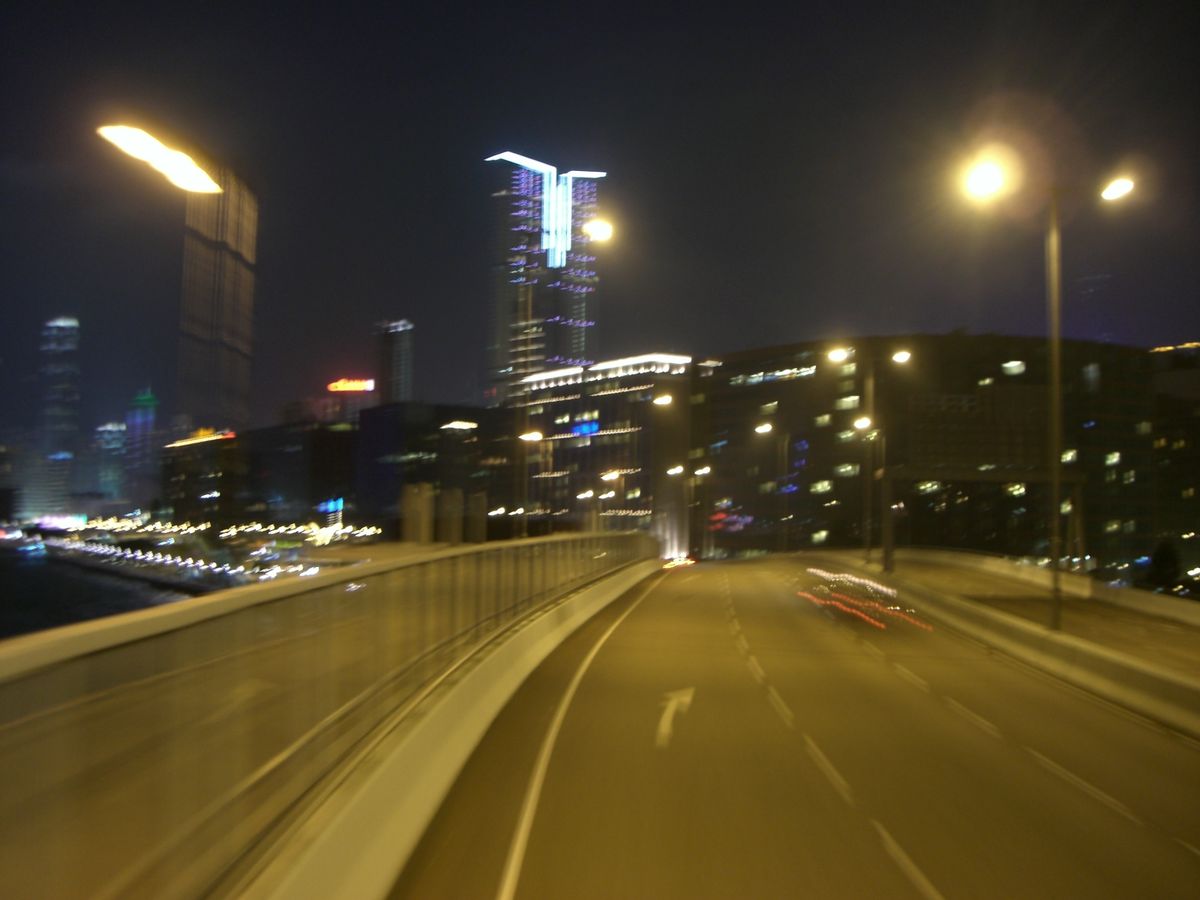 ネイザンロードなどのネオンをみながらしばらく走りますが、信号も多いので「疾走」とまでは行きません。途中で止まって、ネオンをバックに記念撮影する時間もありました。