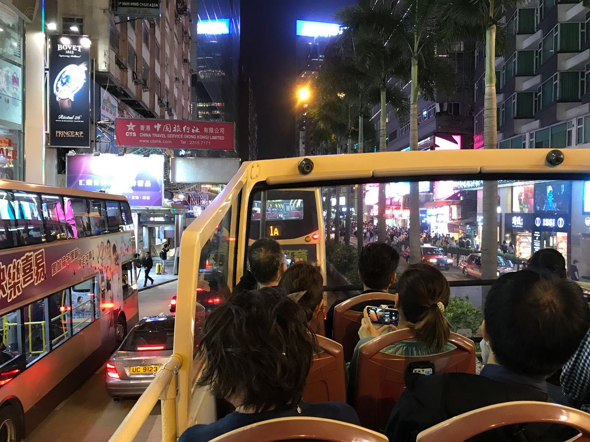 ネオン看板は以前より減っているとのことでしたが、十分に香港らしい景色とオープントップバスならではの開放感を楽しめました。