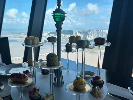 マカオタワーの回転レストラン「360°カフェ(360° Café)」食事券&事前予約サービス 展望台チケット付き<アフタヌーンティー>