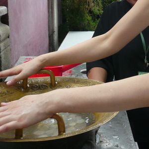 世界遺産、マカオタワーなど様々な所を見て周りましたが、媽閣廟が面白かったです。ここでは占いができます。水をはった洗面器みたいなものがあり、その淵を両手でこすると、音が鳴り、水の波紋が飛び散ると、お金が入ってくるそうです。私は音も鳴らず、波紋も出現ぜす…。残念。