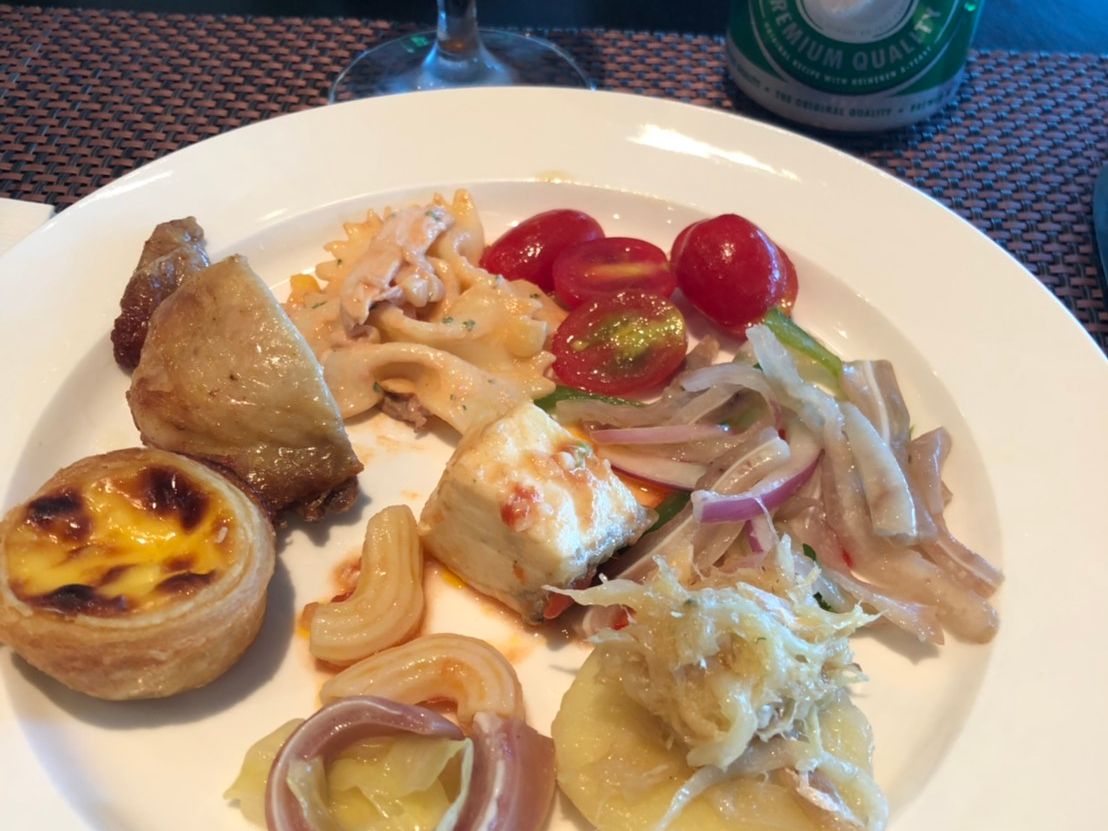 昼食はマカオタワー1階のレストランでポルトガル料理を頂きました。ビュッフェスタイルだったので、自分の好きなものを好きなだけ食べれます。また昼食時間も1時間半ほどあり、街歩きで疲れた足を休ますことが出来ました。