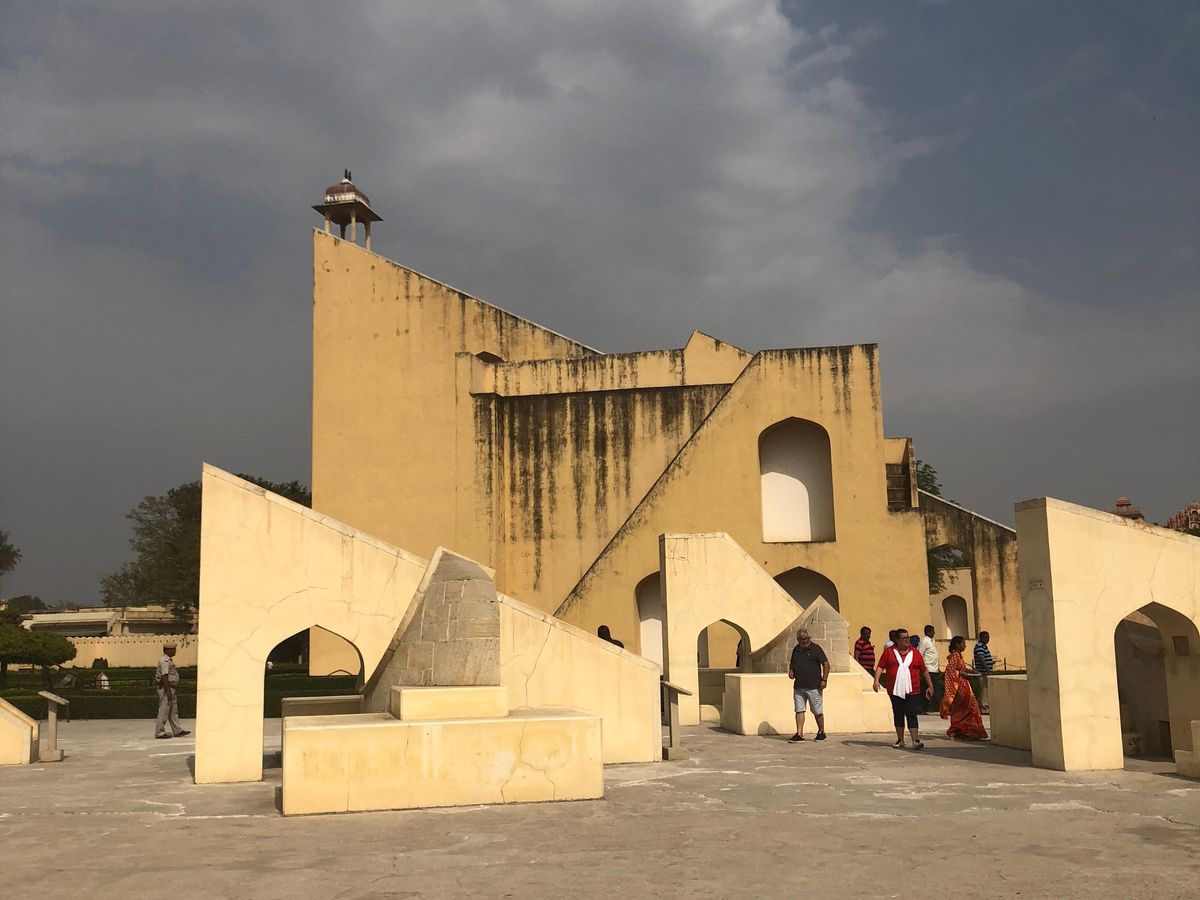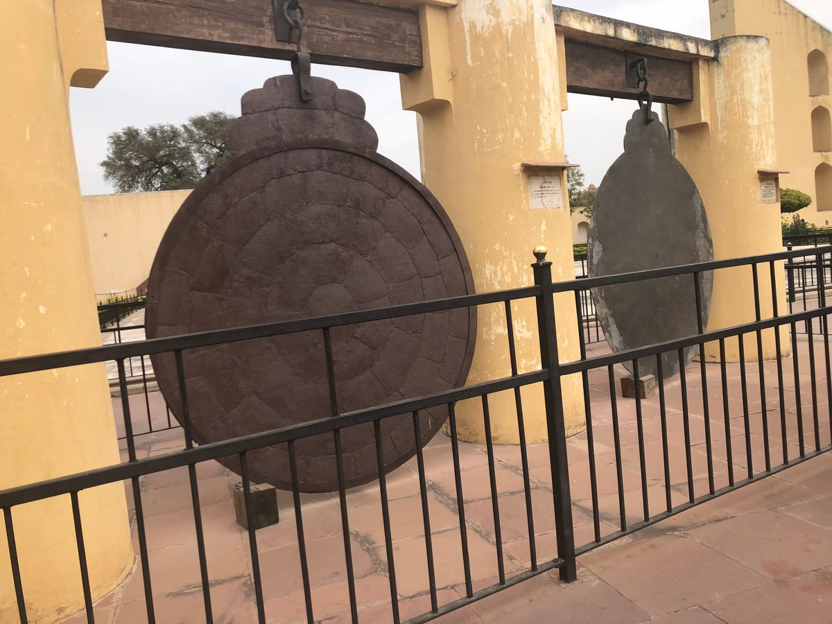 手相診断が終わった後、いよいよ観光開始。ジャンタルマンタルでは、ガイド歴30年のベテラン現地ガイドにバトンタッチしてもらい、天文台、宇宙観測の説明を受けます。