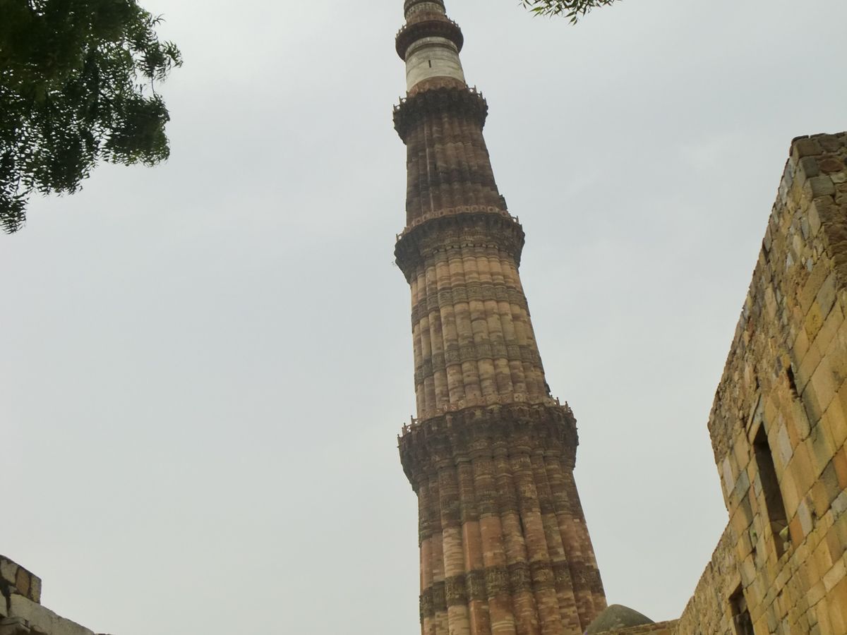 クトゥプ・ミナールも感激です。高いタワー。インド最古のイスラーム遺跡群に来たと、実感できます。