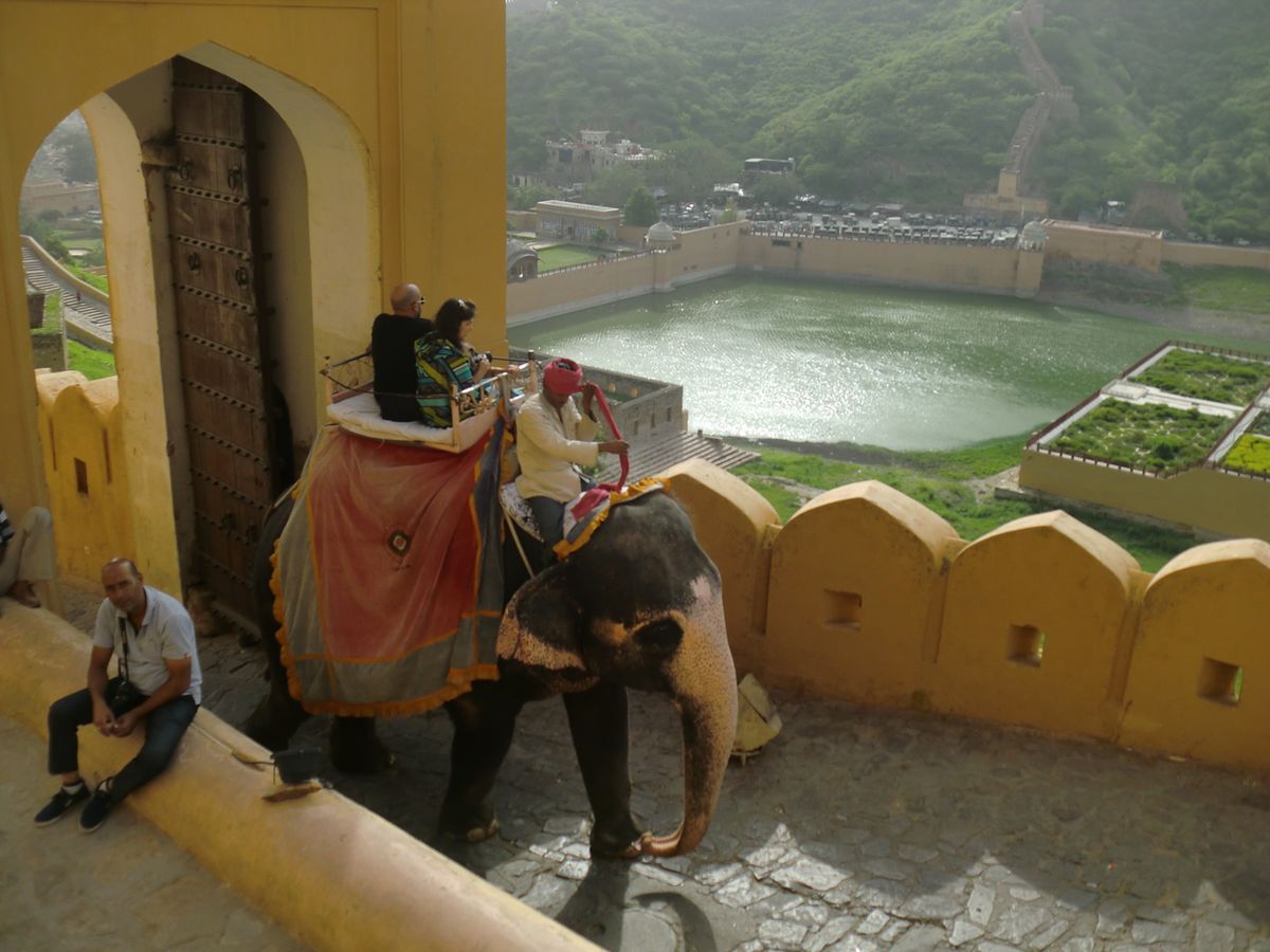 2日目、何と言っても、アンベール城です。丘に立ちとても、きれいでした。象に乗って場内に入りましたが、土産売りがずっと付いてきたので、思いっきり、木彫りの象を最初4個1万円なんぞふっかけてきましたが、負けずと最後には、13個で1300ルピー(2500円くらいで買いました)