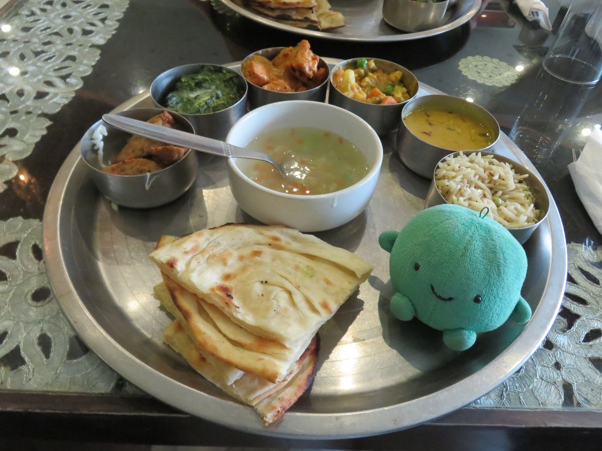 夕食はジャイプール市内のホテルのレストランで。昼のカレーとは味が違い、同じカレーでも飽きることがありません。