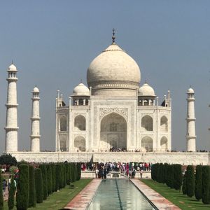 タージマハルは修復工事の足場も無く完璧な状態でした。ですが、タージマハルの感動を味わう前に、いきなりガイドのスミトが用意したカメラマンによる強引な撮影が始まりました。インド式のポーズを強要され、嫌な長時間の撮影が終わると写真選び。最低10枚からだと言われました。撮影前に『2〜3枚しか買わないよ!』とガイドに言いましたが返事はありませんでした。撮影自体も直前にガイドから聞かされ、詳細説明も無いまま強引に行われたので完全に騙されました。そして、ガイドに『時間が無い。タージマハルの中に入る』と言われ、正面からゆっくりタージマハルを観られないのか、と思い怒りを覚え抗議しました。タージマハルの中を観た後に自由時間を与えられましたが、不快と不安な気持ちになりました。後で自由時間が有るなら最初に言って欲しかったです。その後、ガイドの友人の紅茶屋に連れて行かれて半ば強引に紅茶を買わされました。タージマハルの件で疲れているので頭が回りませんでした。アグラ城見学の後の大理石店は断りました。