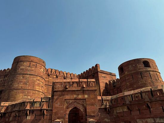 贅をつくした個性的な建物が多く残っているアグラ城。かつての皇帝シャー・ジャハーンが幽閉された部屋からは、純白のタージマハルを望むことができ、亡き妻を想って毎日この景色を眺めていた皇帝の姿が想像されます。ヤムナー河を見晴らす眺めも見どころです。