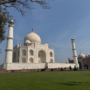 話題の0泊タージマハル!タイパ重視★空港往復送迎付きタージマハル日帰り観光ツアー<日本語ガイド/入場料込み/インド料理の昼食付き>